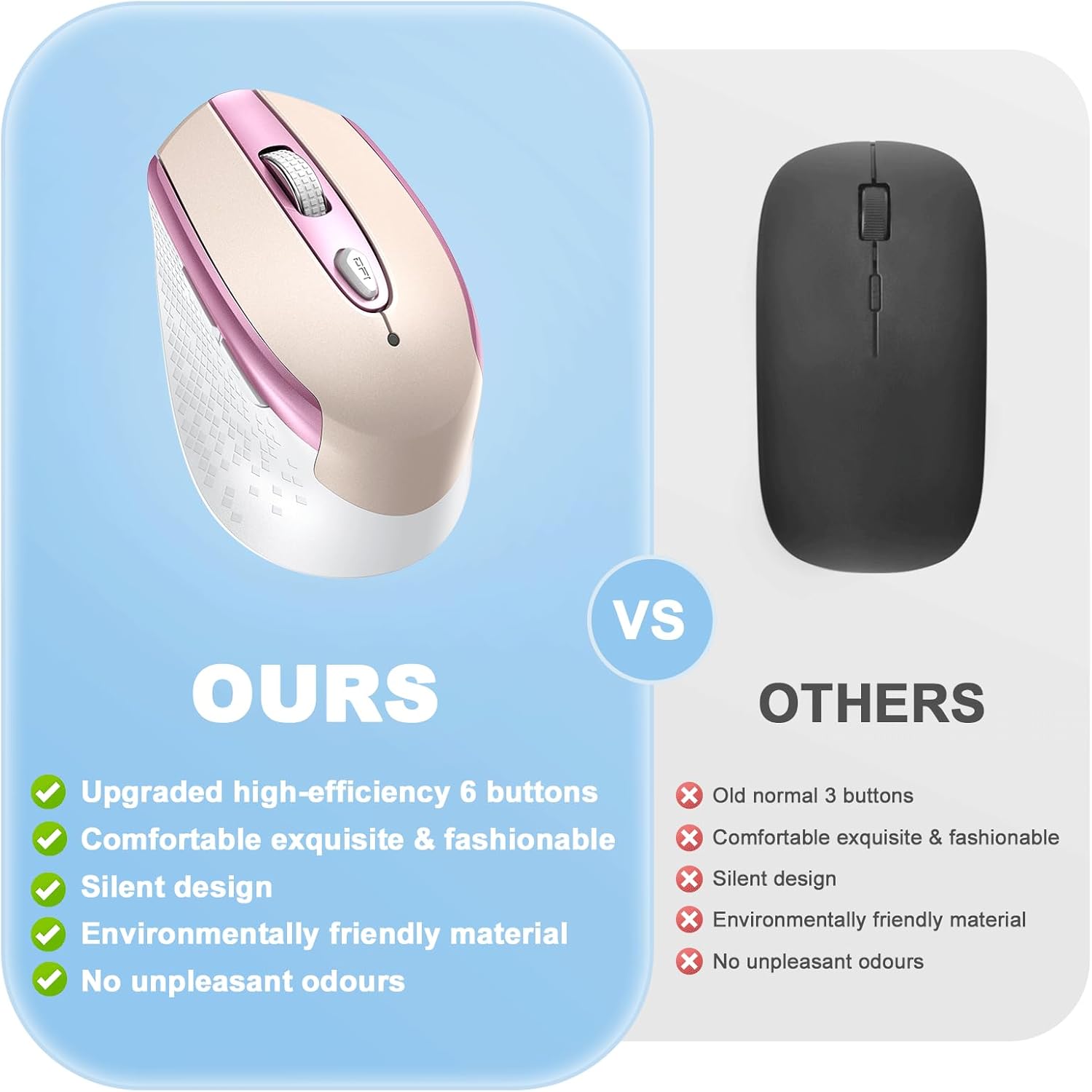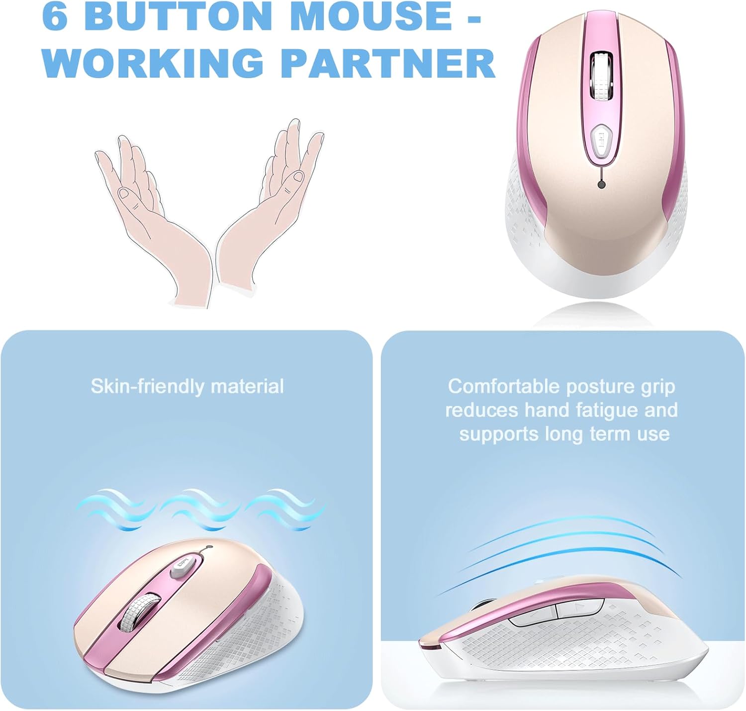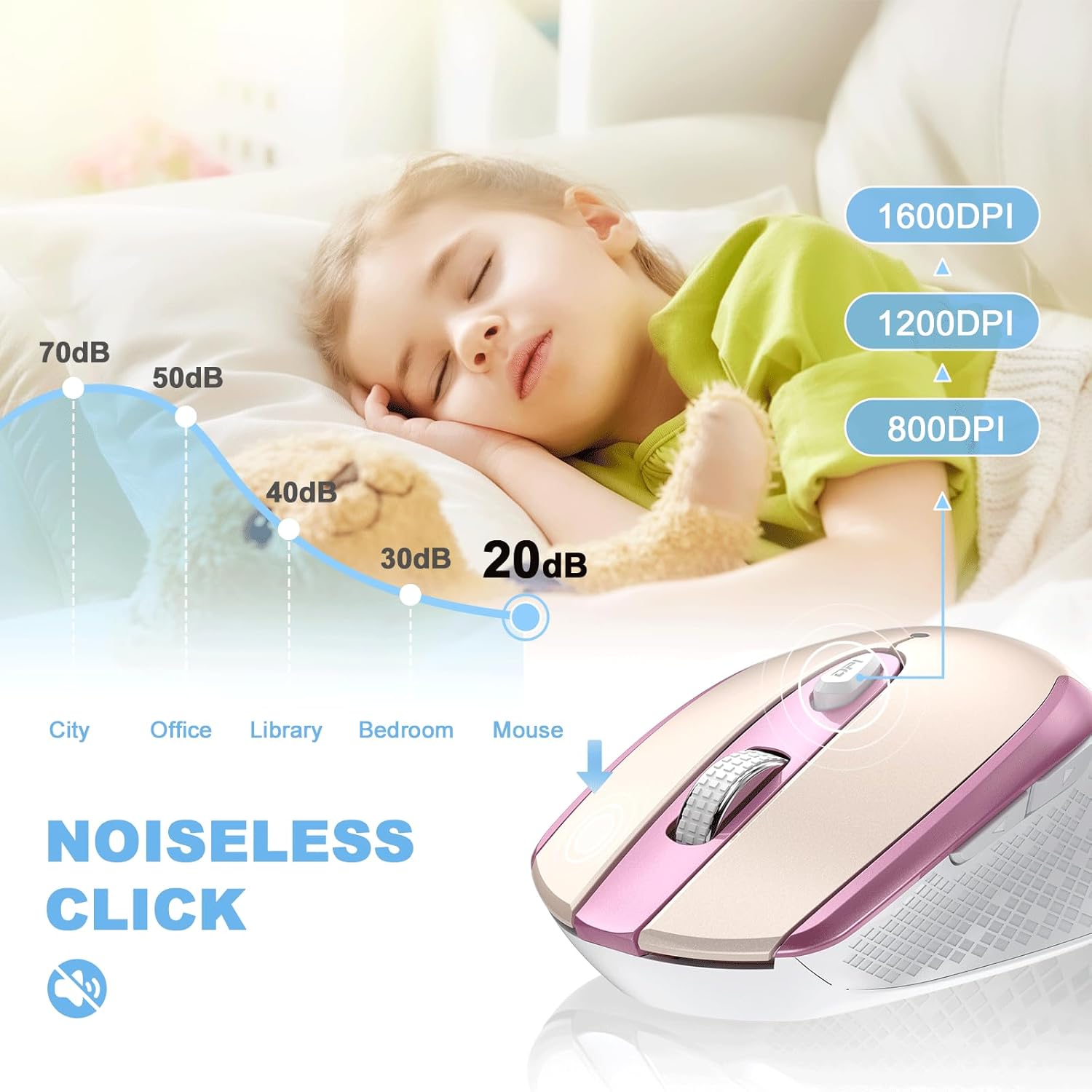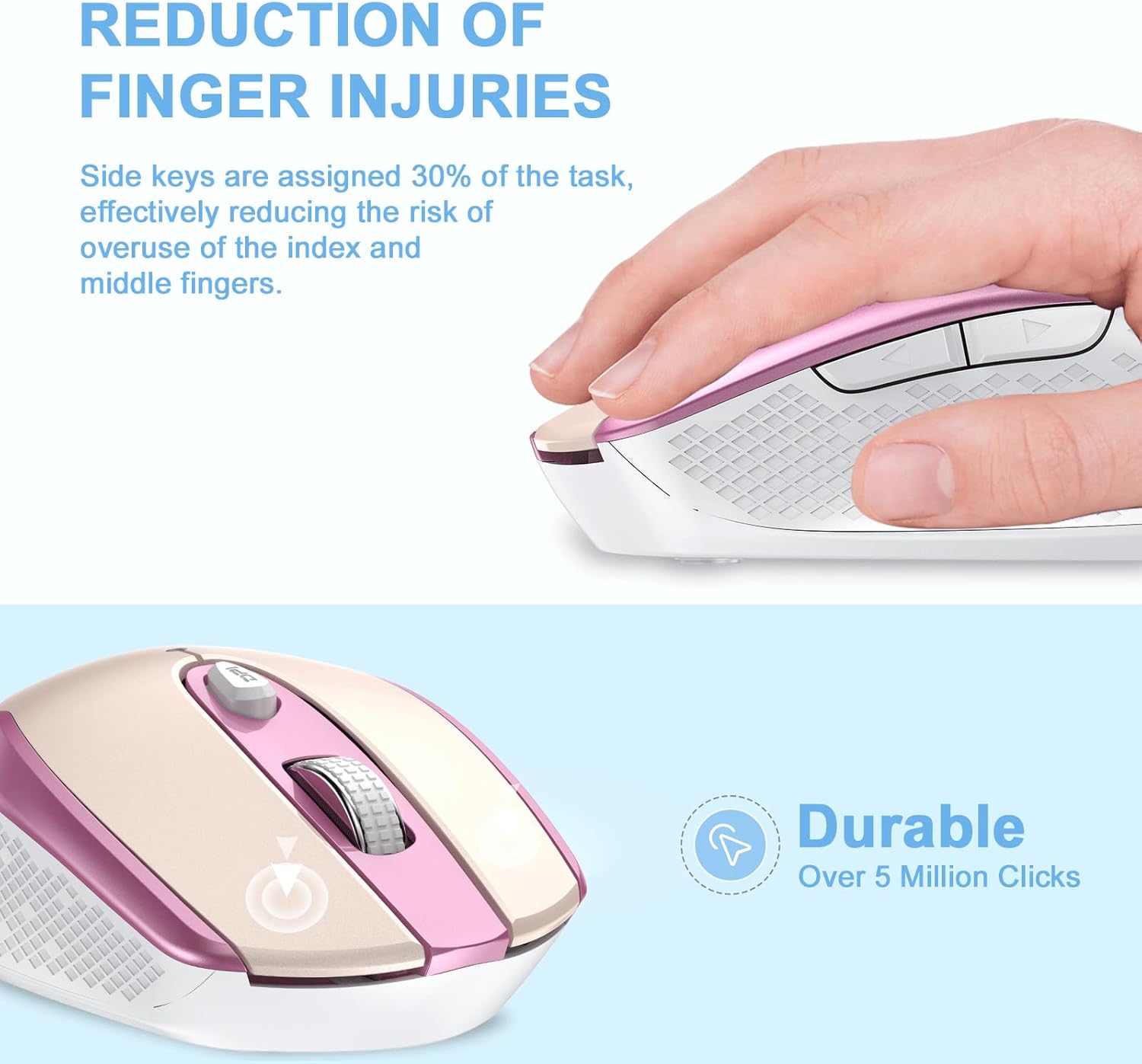 • Тихо щракване: намаляване на шума с до 90%. Мишката не се чува при щракване, колелцето на безжичната компютърна мишка е тихо при въртене. Идеална ергономична мишка за лаптоп, офис, дом и свободно време. Повърхностното покритие на тихата мишка осигурява мек захват. Не е лепкава, дори ако се потите.