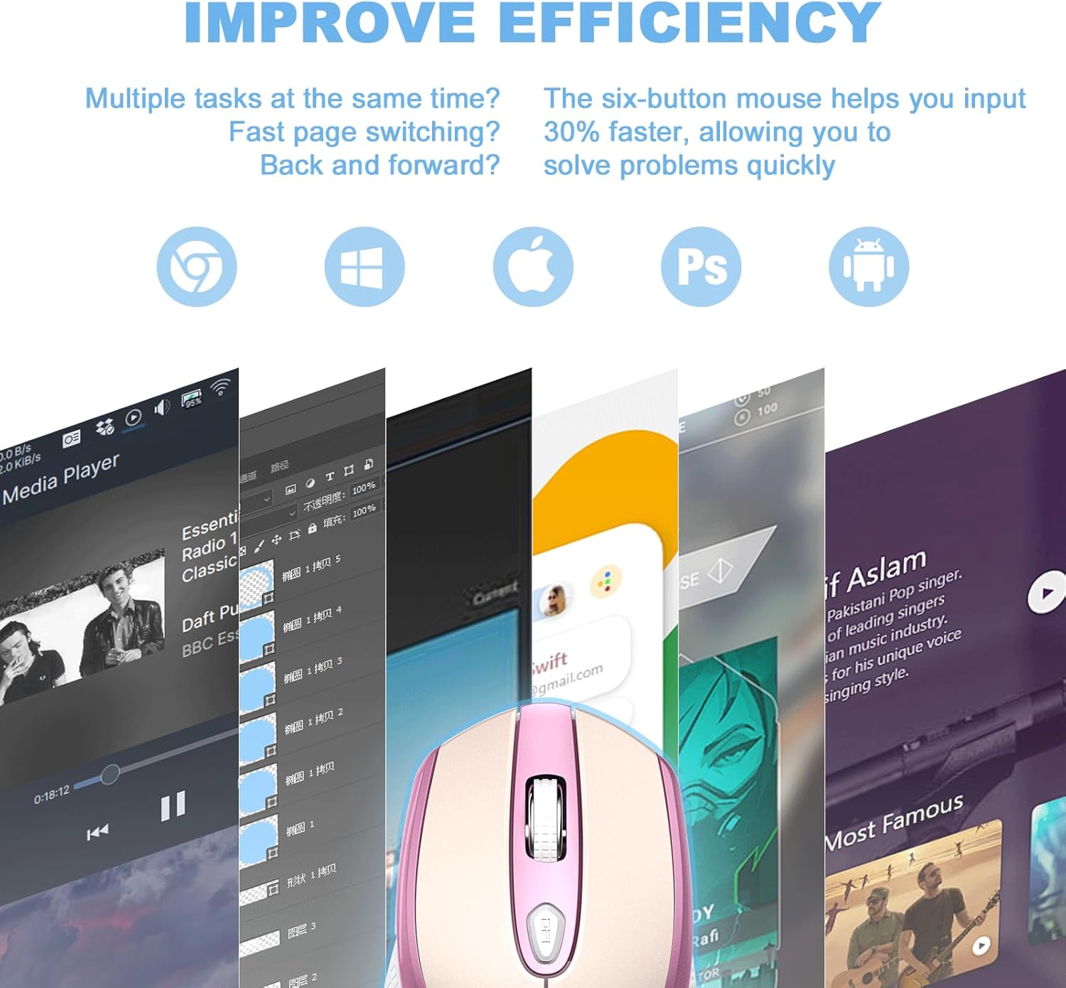 • Широка съвместимост: безжичната мишка за лаптоп е добре съвместима с Windows 7/8/10/XP, Vista 7/8 Mabook OS X 10.4 и Linux и др. Подходяща за настолни компютри, лаптопи, PC и други устройства с USB портове.