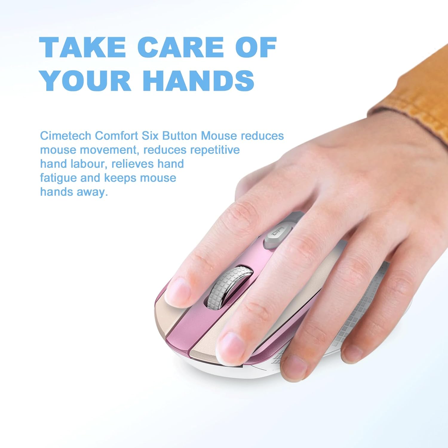 Безжична ергономична мишка cimetech, 2.4G DPI регулируема, 6 бутона, регулируеми странични бутони, 3 нива на DPI, регулируеми за PC, лаптоп, iMac, MacBook, Microsoft Pro, Office Home