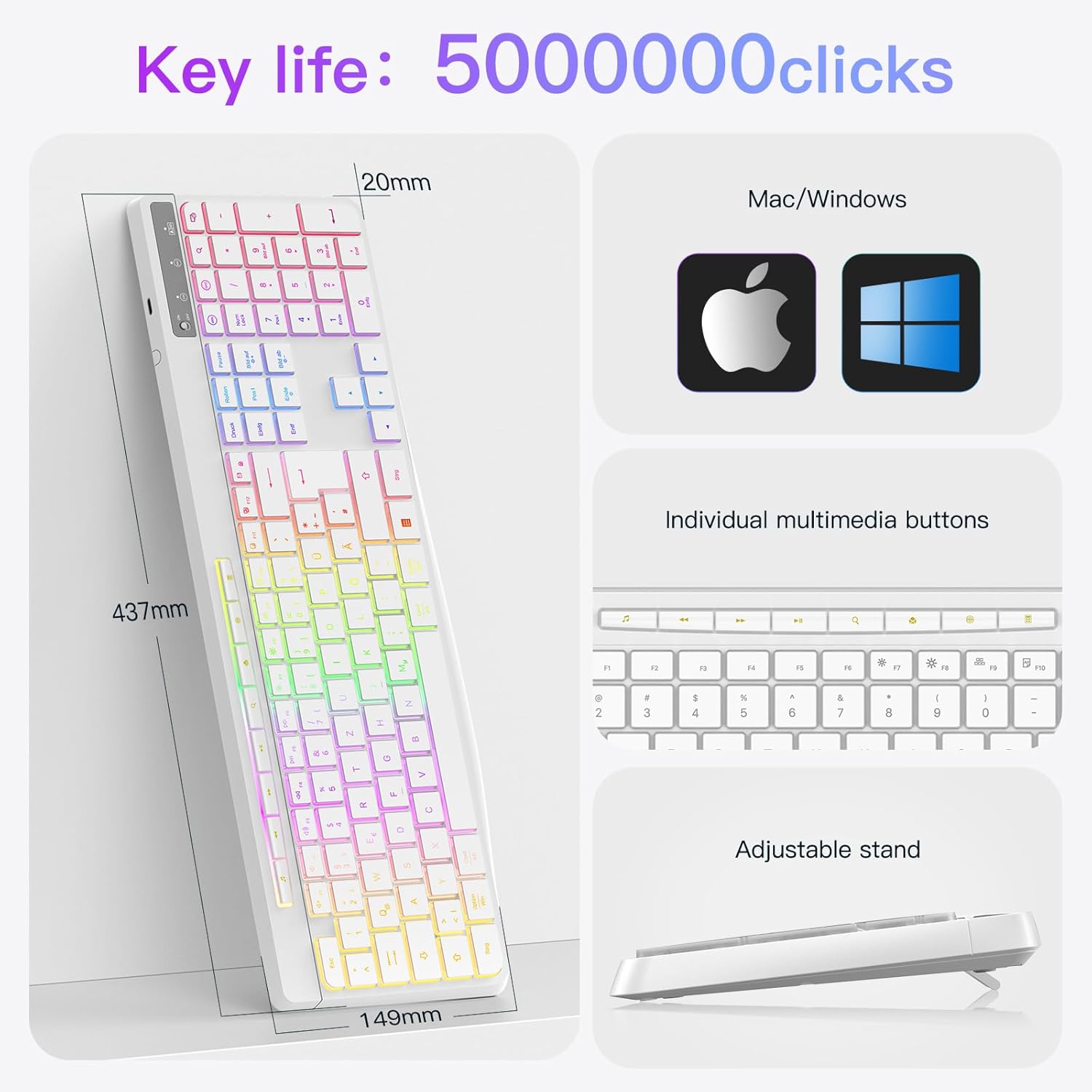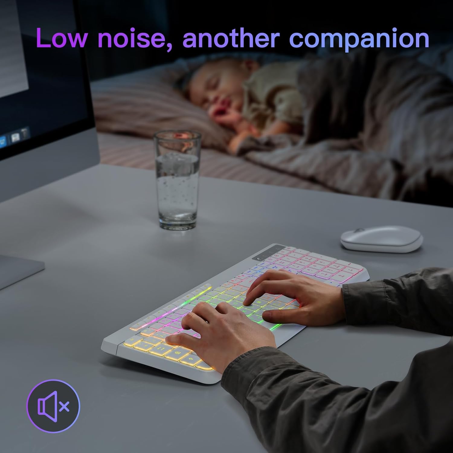 • Безшумни клавиши: безжичната геймърска клавиатура има безшумни клавиши, които осигуряват тих и приятен звук при писане, който не смущава вас и вашите съквартиранти.