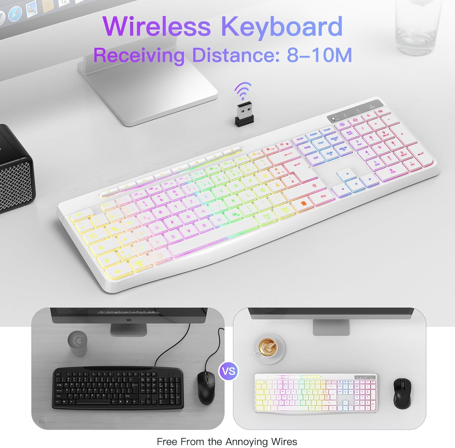 • Безшумни клавиши: безжичната геймърска клавиатура има безшумни клавиши, които осигуряват тих и приятен звук при писане, който не смущава вас и вашите съквартиранти.