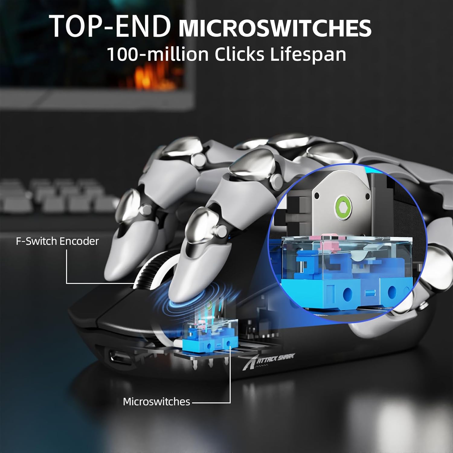 • 100 милиона кликвания от висок клас микро превключвател: Осигурява ултра прецизни кликвания и над 100 милиона цикъла благодарение на висококачествените превключватели. Реагира два пъти по-бързо от конвенционалните механични превключватели. Енкодерът на скрол колелото F-switch позволява прецизно щракване. Всичко това гарантира отлично тактилно усещане в любимите ви игри.