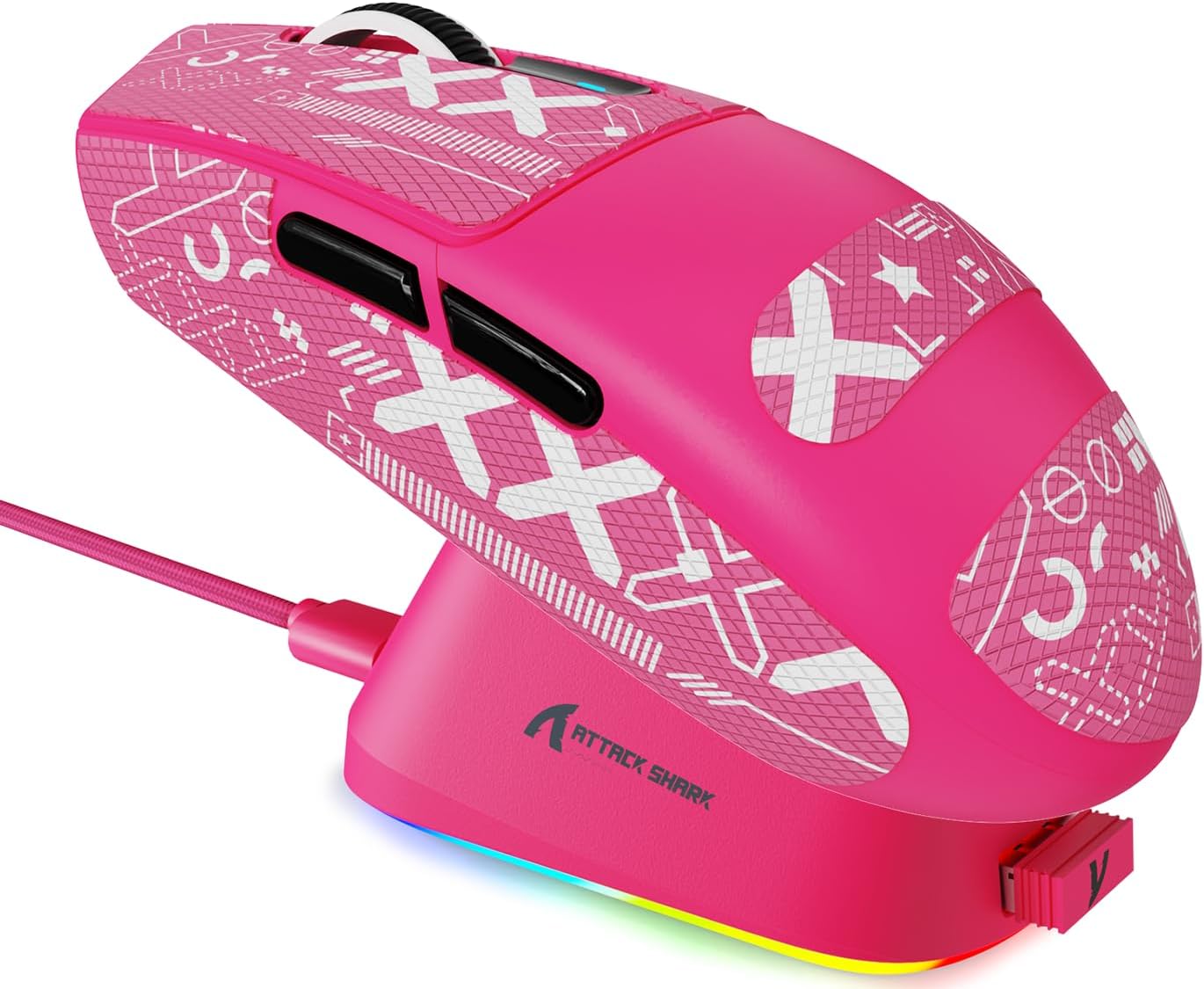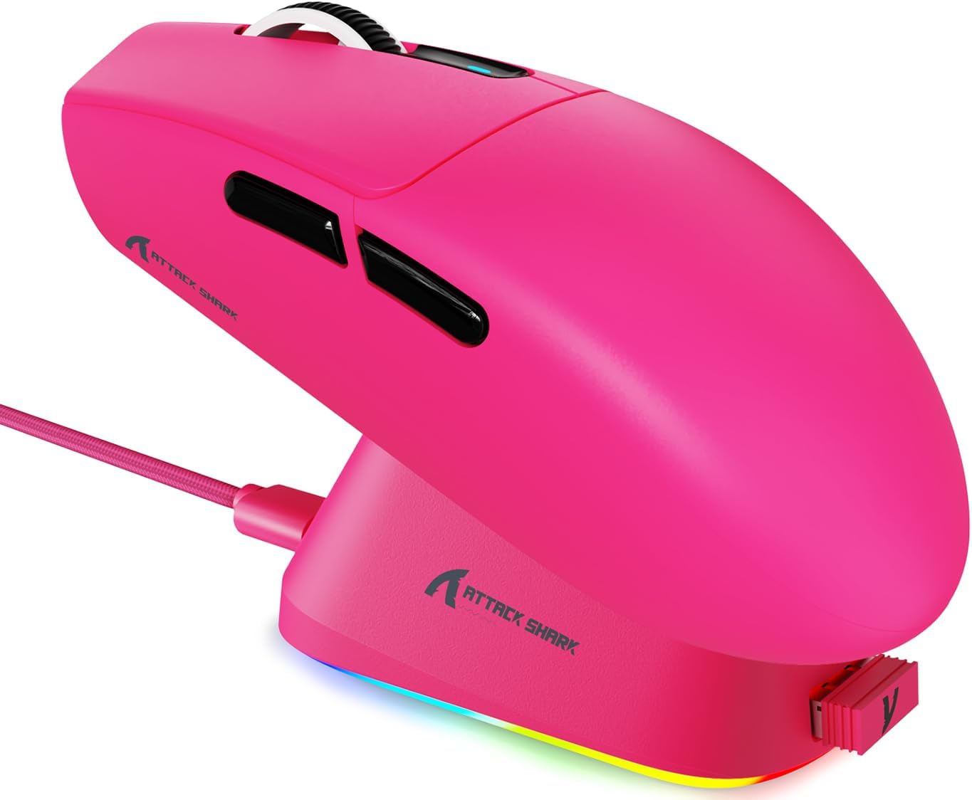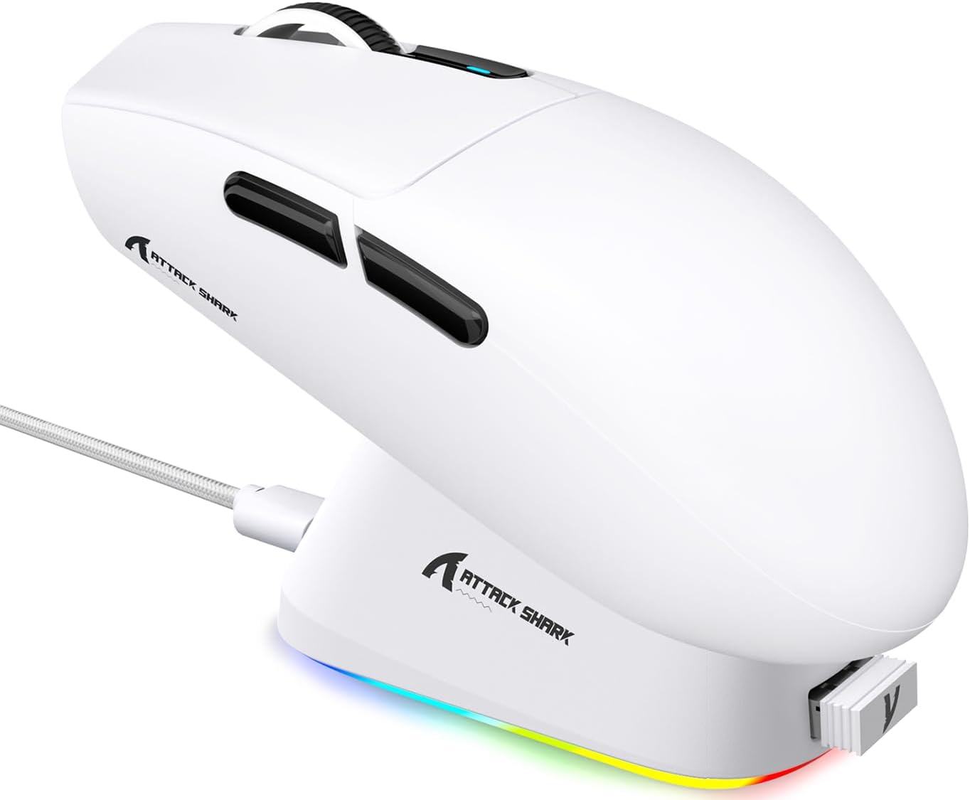 Безжична геймърска мишка ATTACK SHARK G3PRO с магнитна станция за зареждане, сензор PixArt PAW3311, до 25000DPI, BT/2.4GHz/кабелна, 59g супер лека мишка за PC/Xbox/PS/Mac - черна и с лента