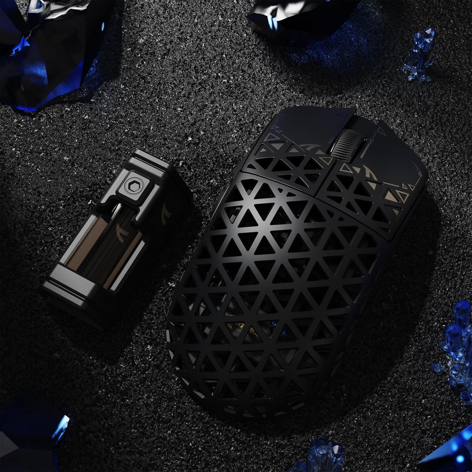 • PAW3950MAX СЕНЗОР С 8K БЕЗЖИЧНА ВРЪЗКА - Оборудван със сензора PixArt PAW3950 MAX и чип Nordic52840, той осигурява проследяване без забавяне чрез 8K безжичен (персонализиран приемник) или 1K кабелен режим и най-висока прецизност за бързи, състезателни игри. С 42 000 програмируеми DPI, 650 IPS и 50g ускорение - идеален за прецизни удари в главата или MMO магии.