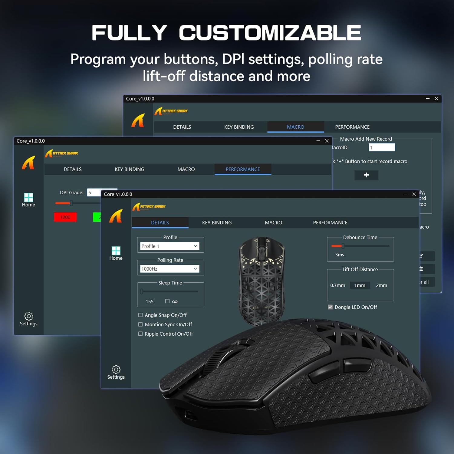 • УЛТРА ЛЕКА КОНСТРУКЦИЯ ОТ ВЪГЛЕРОДНИ ВЛАКНА ATTACK SHARK R5 Ultra, изработен от изключително здрави, шприцвани въглеродни влакна, е изключително лек, но здрав като танк - може да издържи на падания, удари и всичко останало. Кухият дизайн осигурява гъвкавост за светкавично бързи движения в игри като FPS, MMO, RPG, MOBA, Battle Royale и други динамични игри.