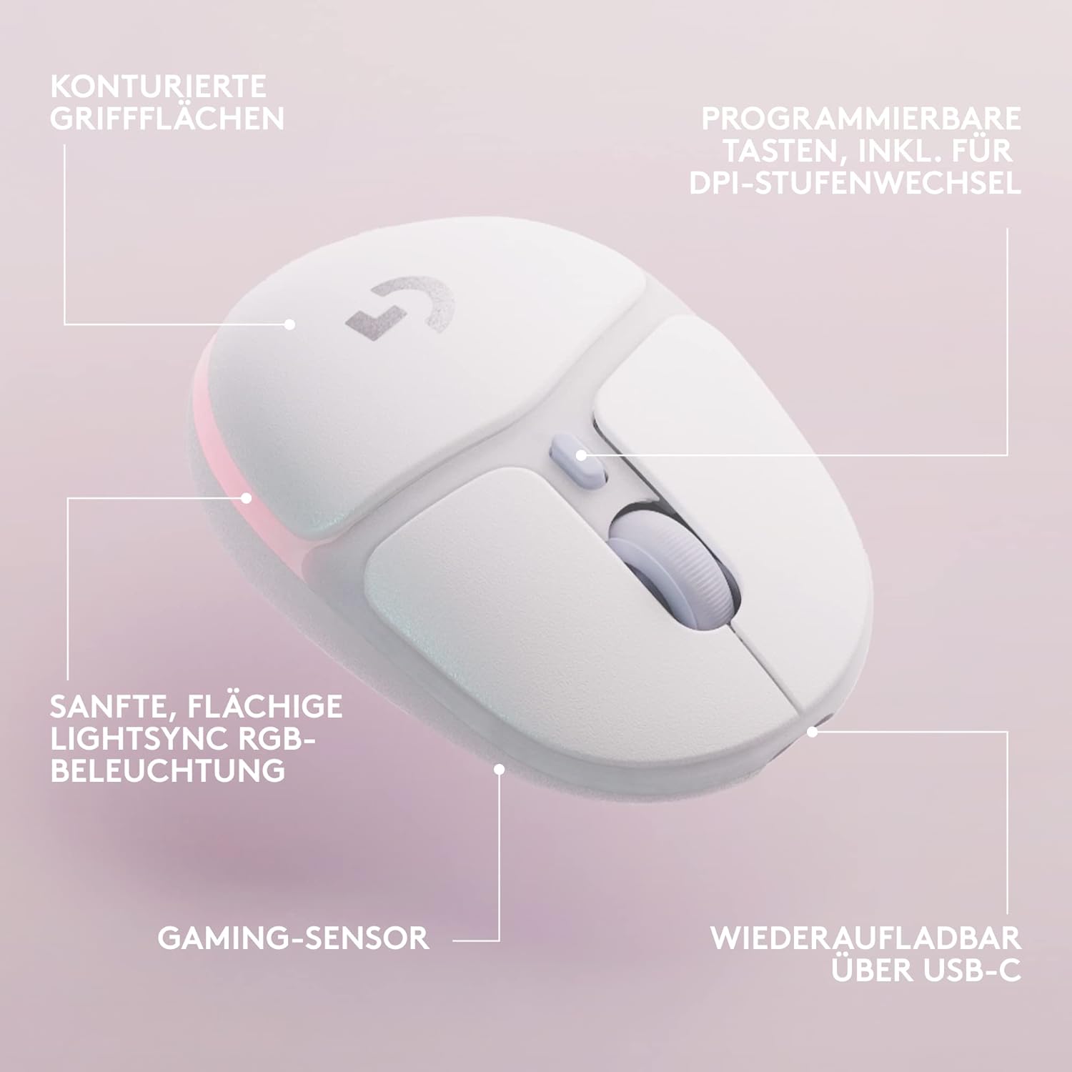 Безжична геймърска мишка Logitech G 705 и безжична механична геймърска клавиатура G715 с поставка за китката - LIGHTSYNC RGB осветление с безжична технология Lightspeed - PC/Mac, бяла