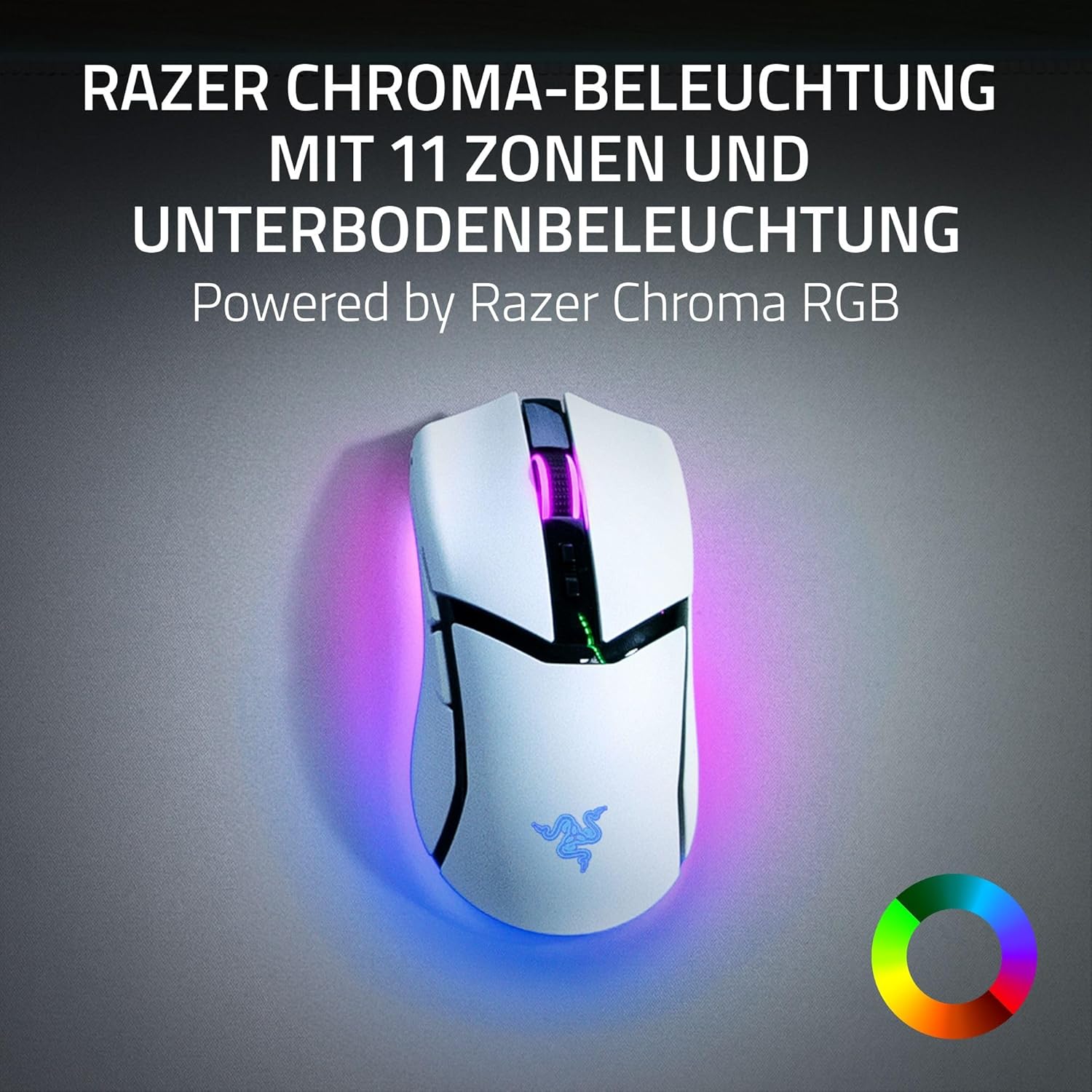 Безжична геймърска мишка Razer Cobra Pro с RGB оптичен сензор Focus Pro с 30K DPI (10 персонализируеми бутона, HyperSpeed ​​​​безжично анкетиране 8K Hz, Bluetooth, Chroma осветление с 11 зони) бяла