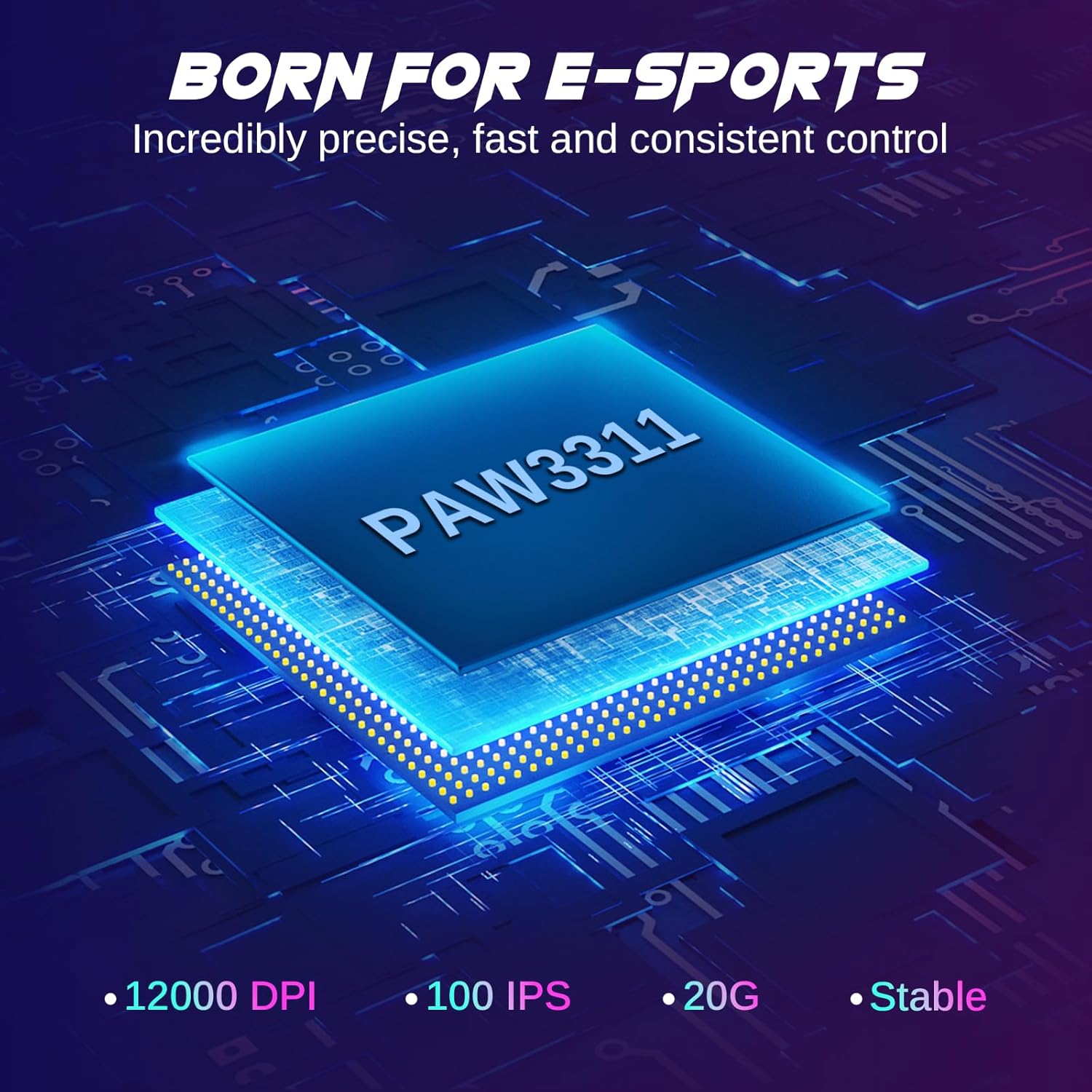 • Прецизно регулируема скорост: безжичната геймърска мишка разполага с оптичен сензор Pixart PAW3311 с до 12000 DPI и незабавно регулируема чувствителност (препрограмируема) чрез бутона DPI в горната част на мишката. Има и 4 честоти на анкетиране (125-250-500-1000Hz) за намаляване на латентността и осигуряване на плавно движение.