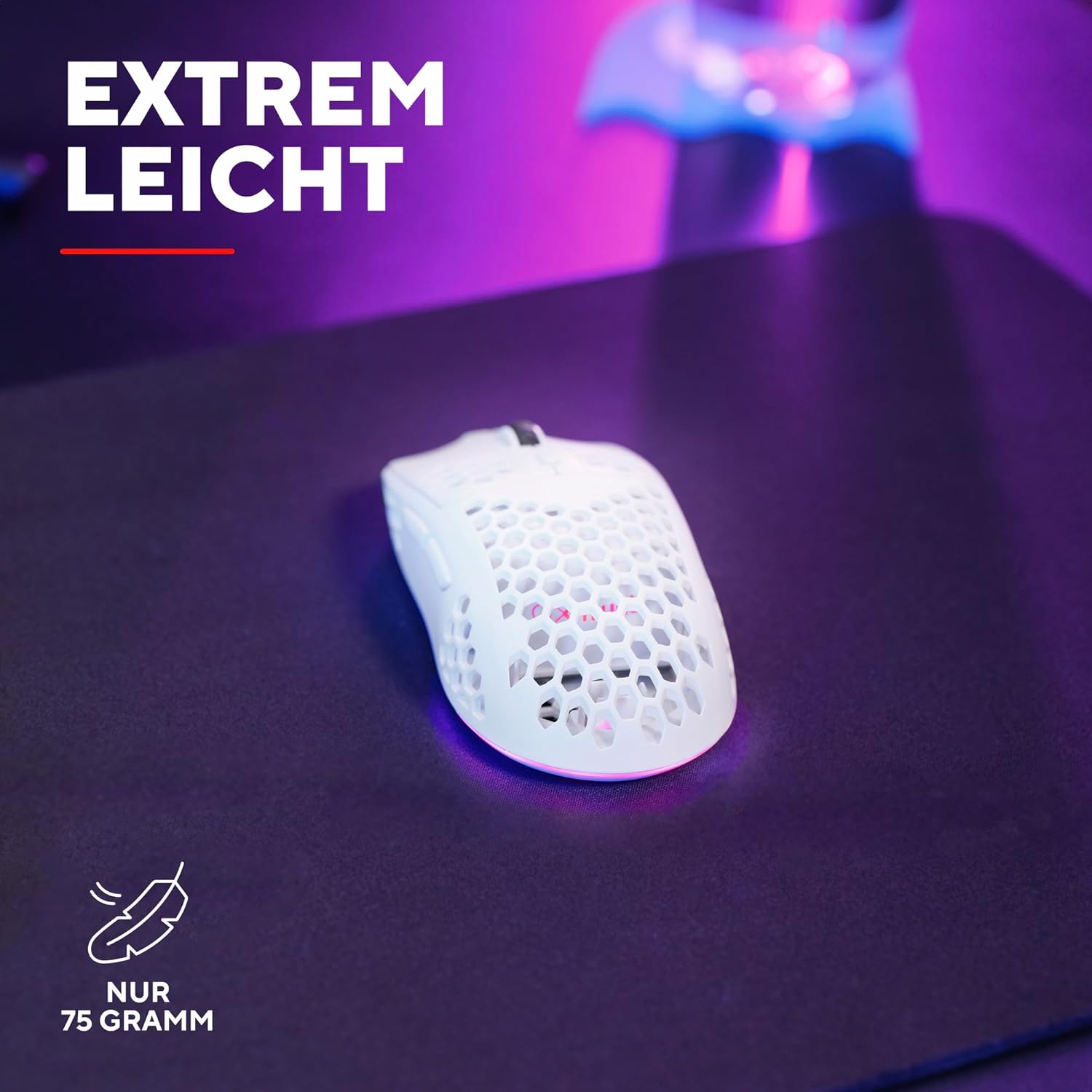 • ИЗГИБЕН ДИЗАЙН - Готин външен вид за готини игри. Структурата тип „пчелна пита“ прави корпуса на мишката особено лек и удобен, като същевременно осигурява изключително стилна настройка.
