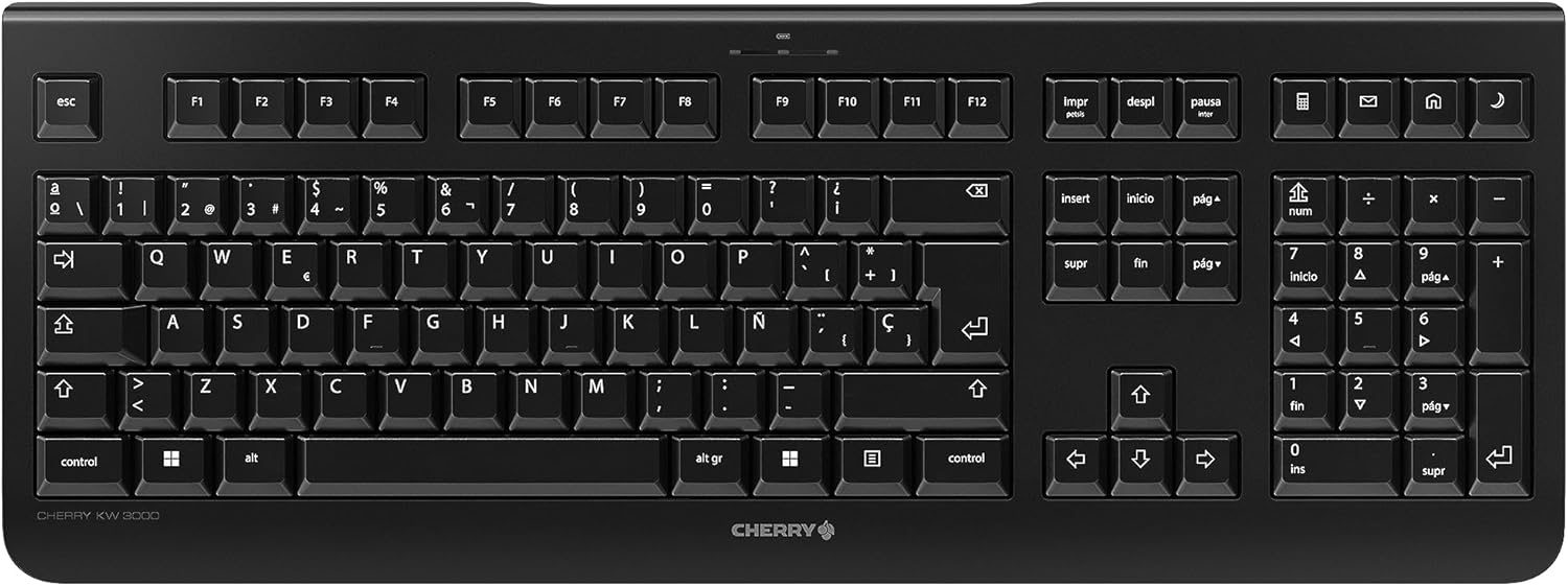 Безжична клавиатура CHERRY KW 3000 с цифров блок, френска подредба (AZERTY), 2.4 GHz, клавиши с нисък шум, плосък дизайн, с батерия, черна