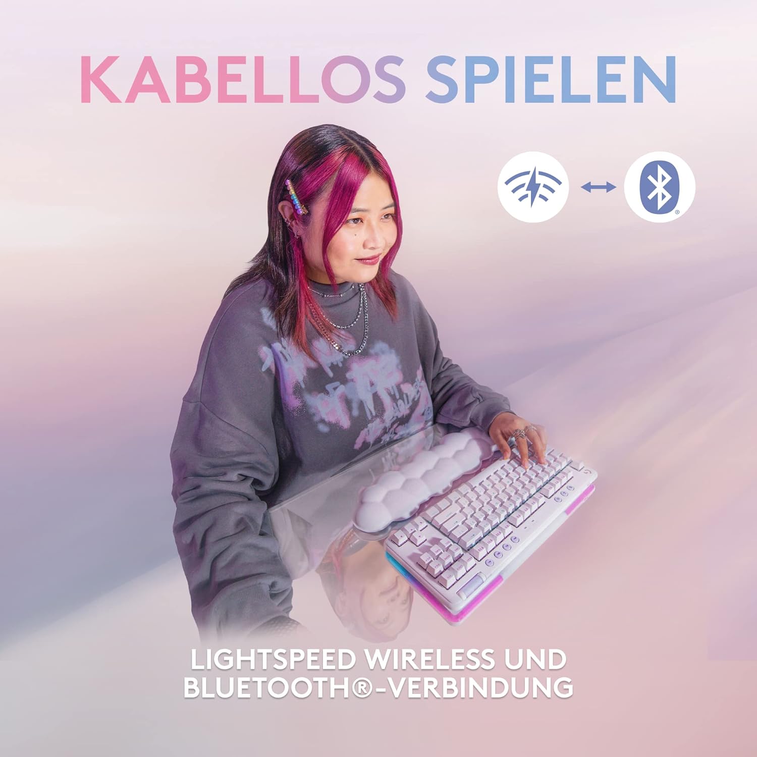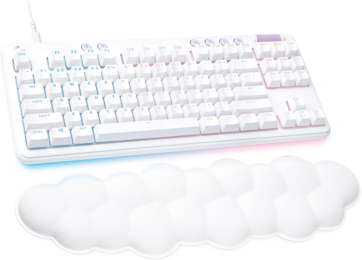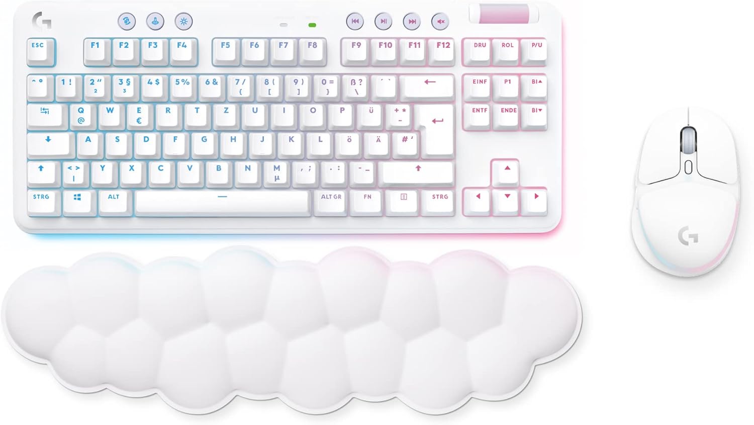 • Комфорт, нежен като облак: Потопете се в мечтателния бял дизайн на G715 и удобната му опора за длани във формата на облак; компактната механична клавиатура TKL и регулируемата височина осигуряват комфортно игрово изживяване през целия ден.