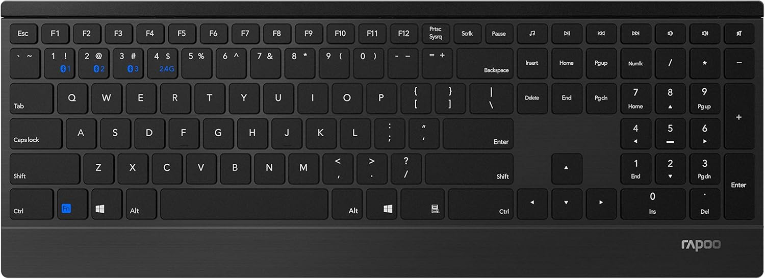 Безжична клавиатура Rapoo E9500M, плосък алуминиев дизайн - черен & M300 безшумна безжична мишка, 1600 DPI сензор, 9 месеца живот на батерията - тъмносив