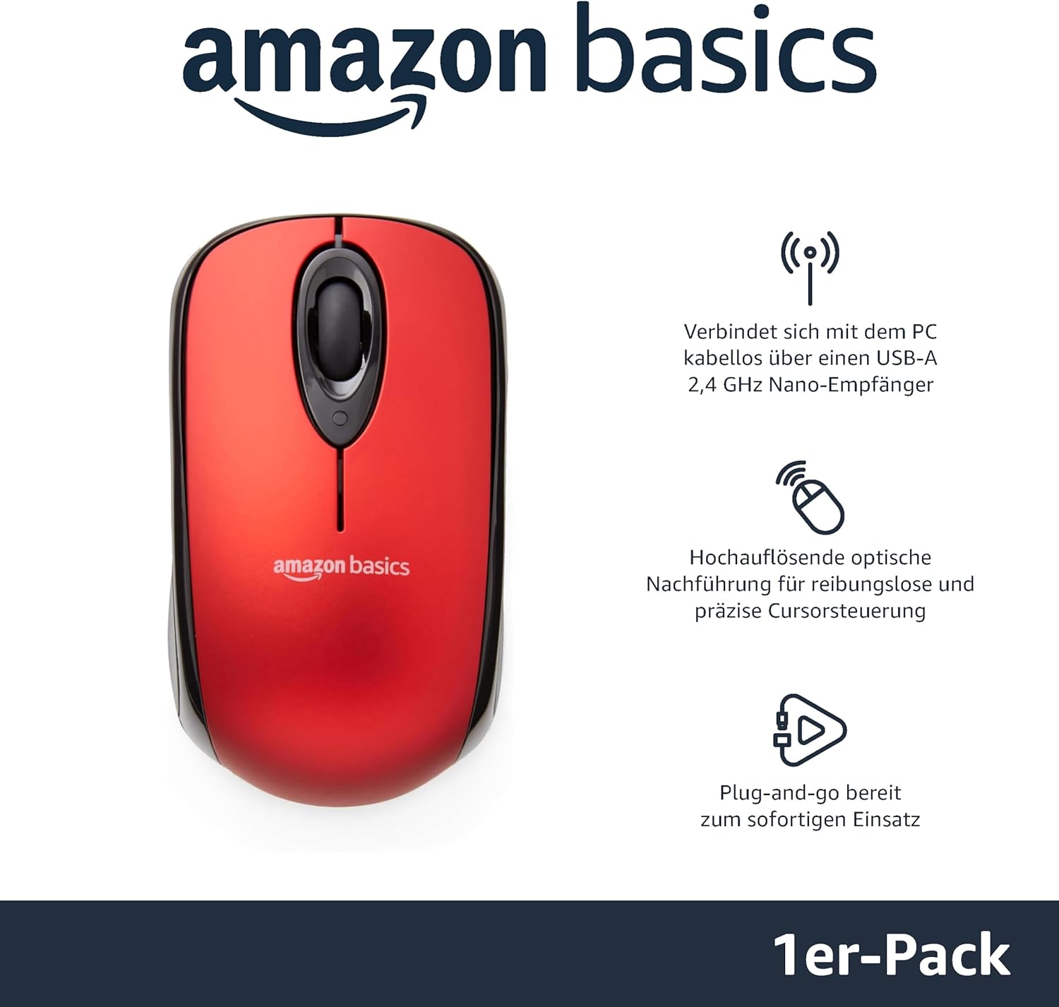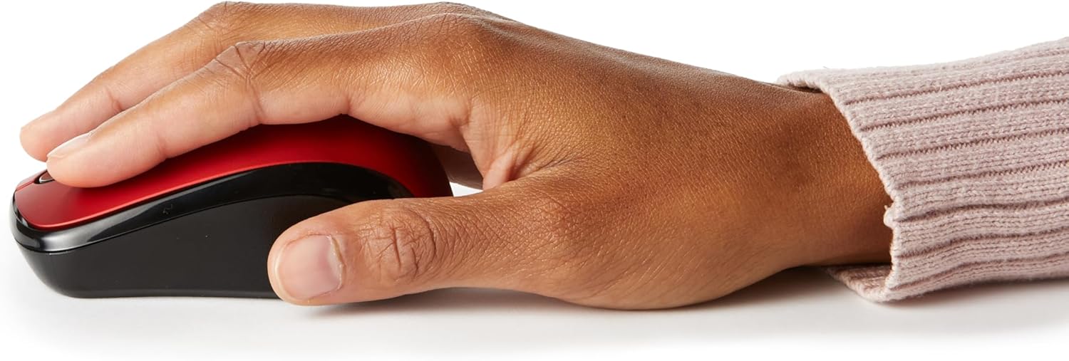 Безжична компютърна мишка Amazon Basics с USB Nano приемник (червена)