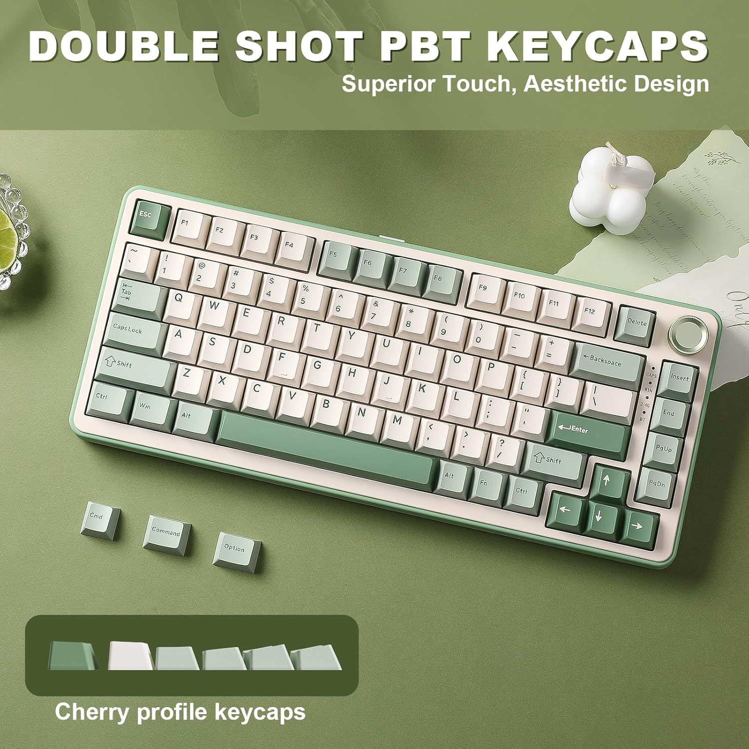 Безжична механична клавиатура YUNZII B75 PRO, 75% оформление с въртящ се бутон, запечатана структура с възможност за гореща смяна, кремообразни предварително смазани превключватели, RGB, Bluetooth/Type-C/2.4G за Windows/Mac (превключвател Cocoa Cream V2)