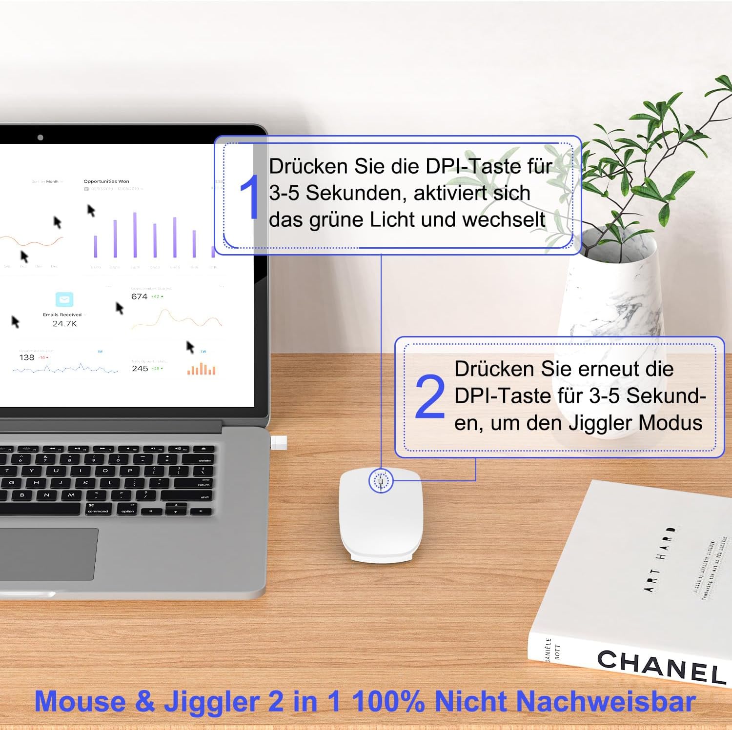 • Bluetooth мишка и джиглер в едно устройство - Azmall Bluetooth iPad Mouse 2025 съчетава безжична мишка и вграден джиглер! Вече няма нужда от отделно устройство - просто натиснете и задръжте бутона DPI за 3-5 секунди, за да активирате незабележимия режим на джиглер. Перфектен за офис служители, дистанционни работници, ИТ специалисти и всеки, който иска да предотврати заключването на компютъра, когато е далеч.