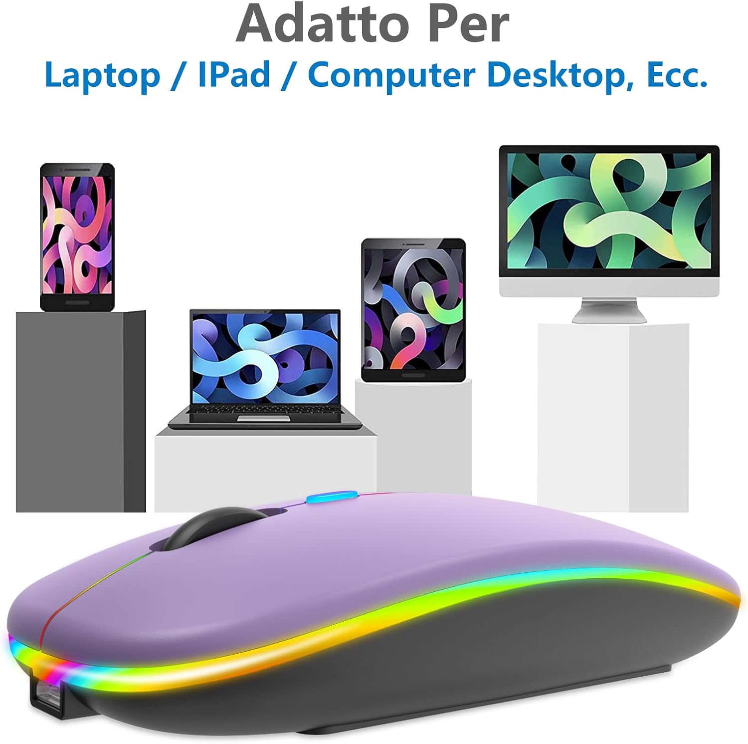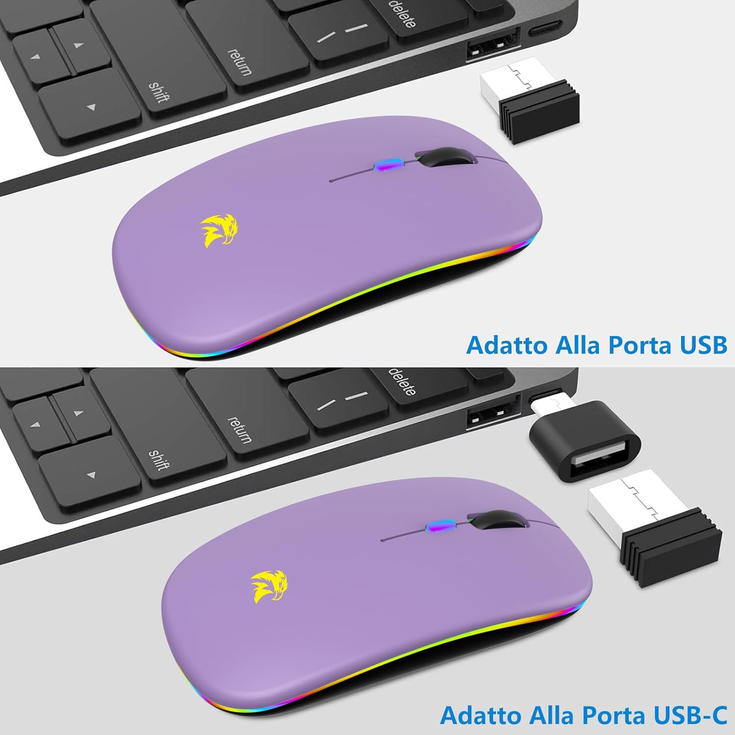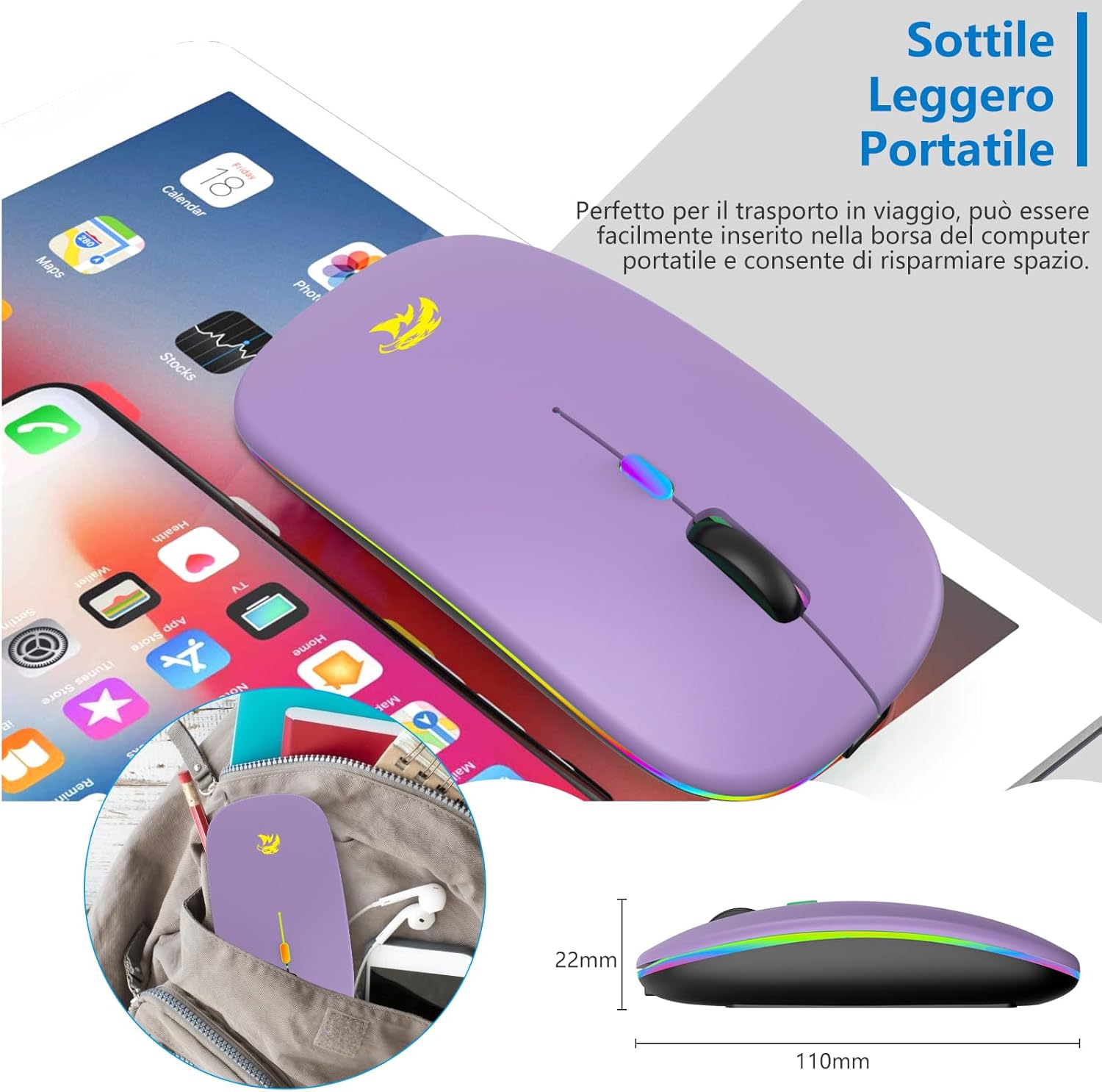 Безжична мишка HZD, 2.4 GHz USB безжична мишка, Bluetooth мишка, 1600 DPI оптично проследяване, за лаптоп, компютър, PC, Mac, iOS, Android, iPad, Windows (лилава)