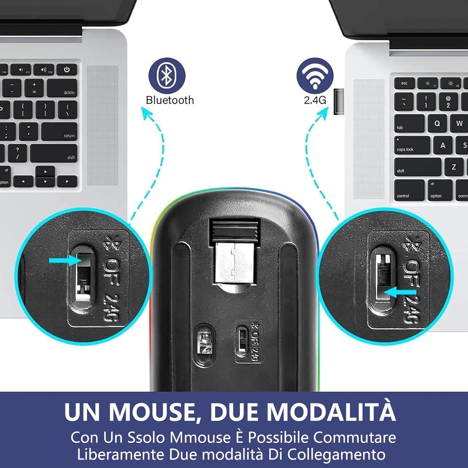 • Широка съвместимост: Безжичната мишка 2.4GHz за лаптопи е подходяща за лаптопи, настолни компютри и всички устройства с USB порт. Просто свържете USB приемника и го включете. Bluetooth мишката е съвместима с лаптопи, Mac, PC, iPad, iPhone и други устройства с Bluetooth. Забележка: Системни изисквания за BT5.1: Windows 8.0, Windows 10 или по-нова версия; MacOSX 10.10 или по-нова версия; Приложимо с iOS13 или по-нова версия/Android 5.0 или по-нова версия. Проверете или актуализирайте операционната система преди употреба.