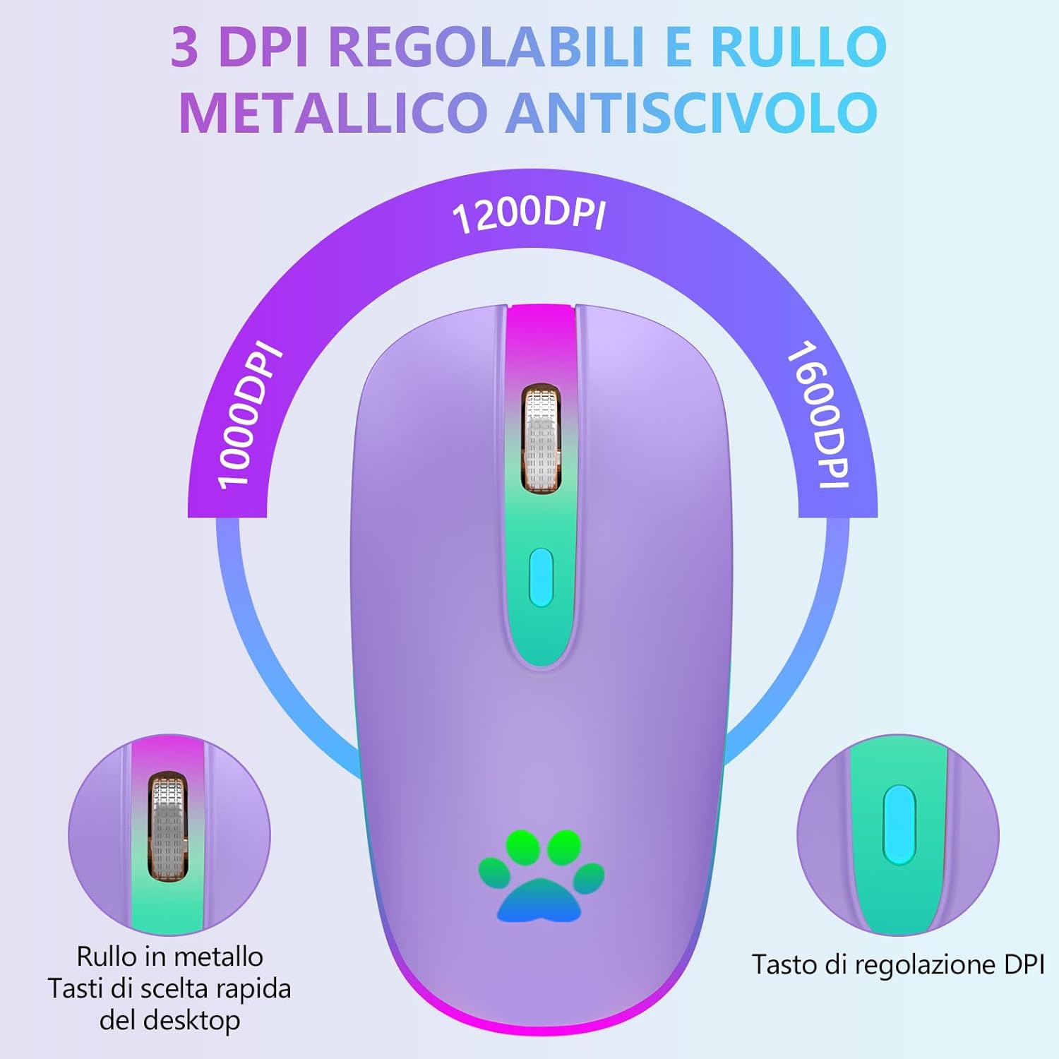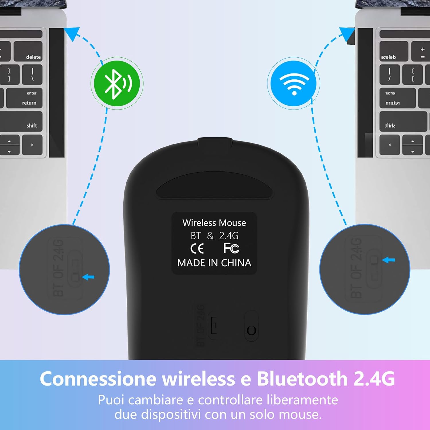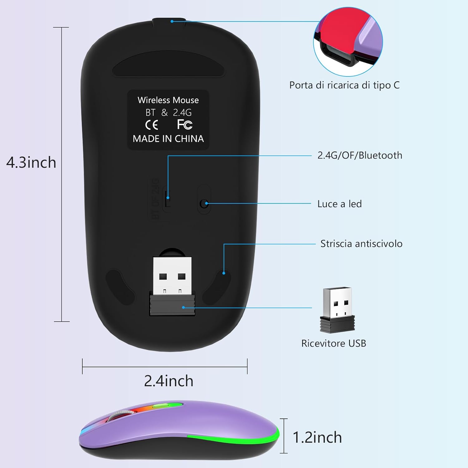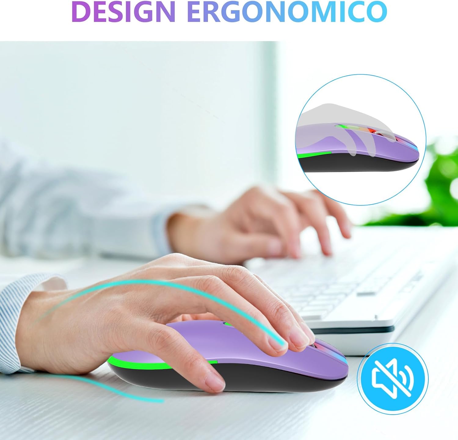 Безжична мишка KBCASE 2.4 GHz USB безжична мишка, Bluetooth мишка 1600 DPI оптично проследяване, акумулаторна геймърска безжична мишка със 7 цвята LED светлина за PC, лаптоп, Mac, iOS, Android, iPad,