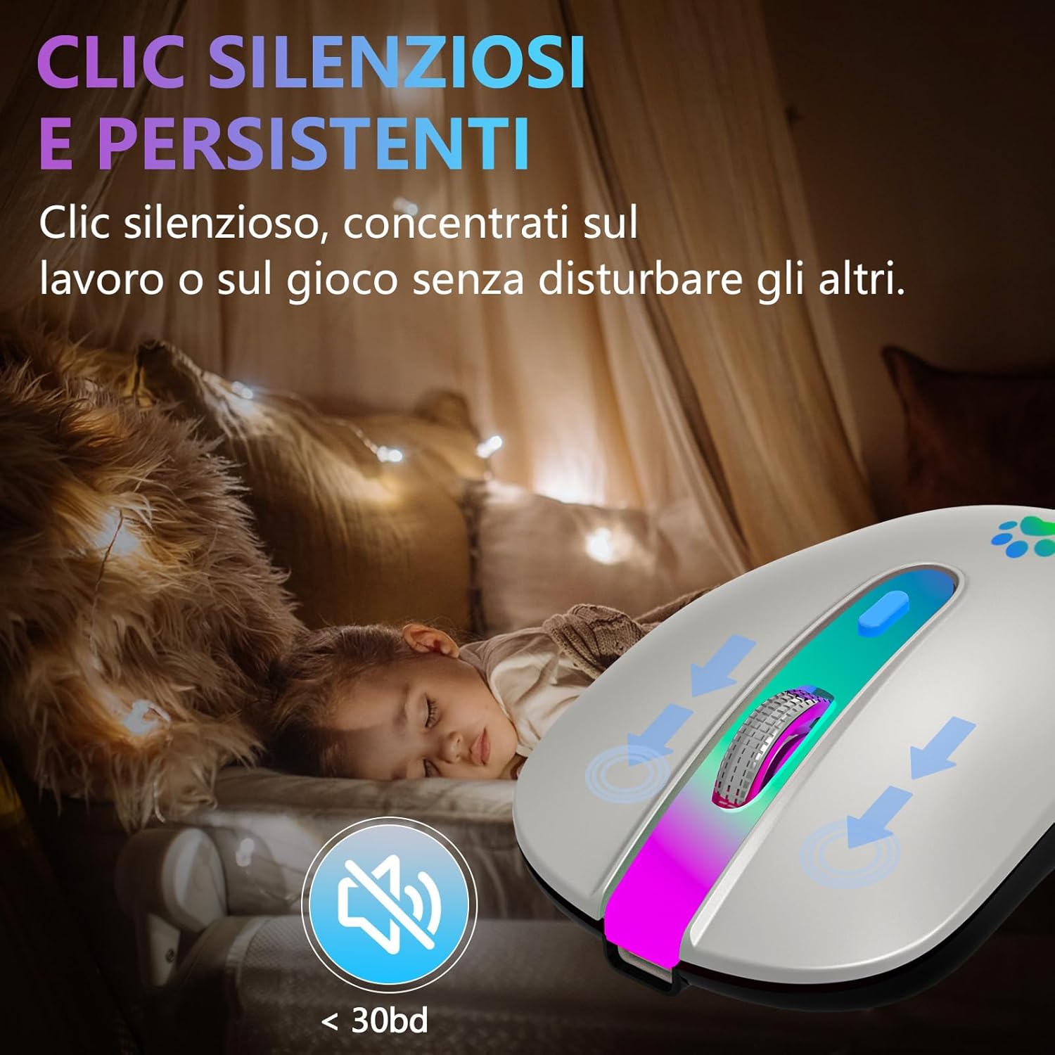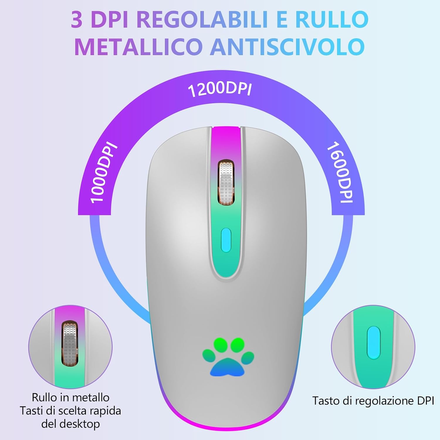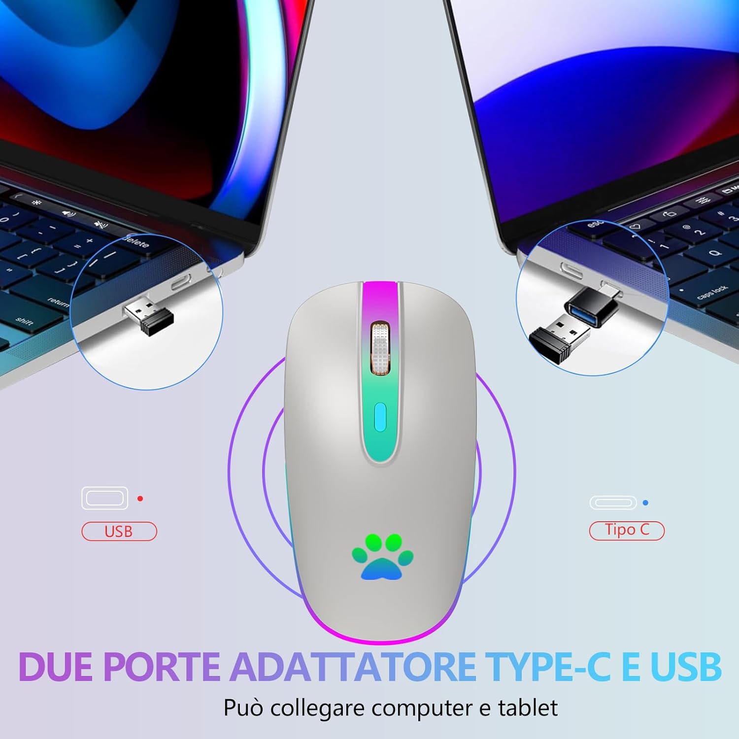 Безжична мишка KBCASE 2.4 GHz USB безжична мишка, Bluetooth мишка 1600 DPI оптично проследяване, акумулаторна геймърска безжична мишка със 7 цвята LED светлина за PC, лаптоп, Mac, iOS, Android, iPad,