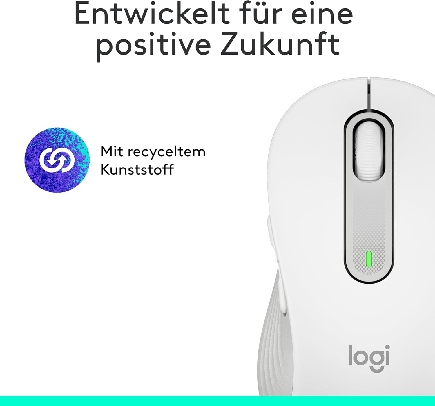 Безжична мишка Logitech Signature M650 - за малки до средни ръце, 2-годишна батерия, тихи щракания, персонализируеми странични бутони, Bluetooth, съвместимост с множество устройства - бяла