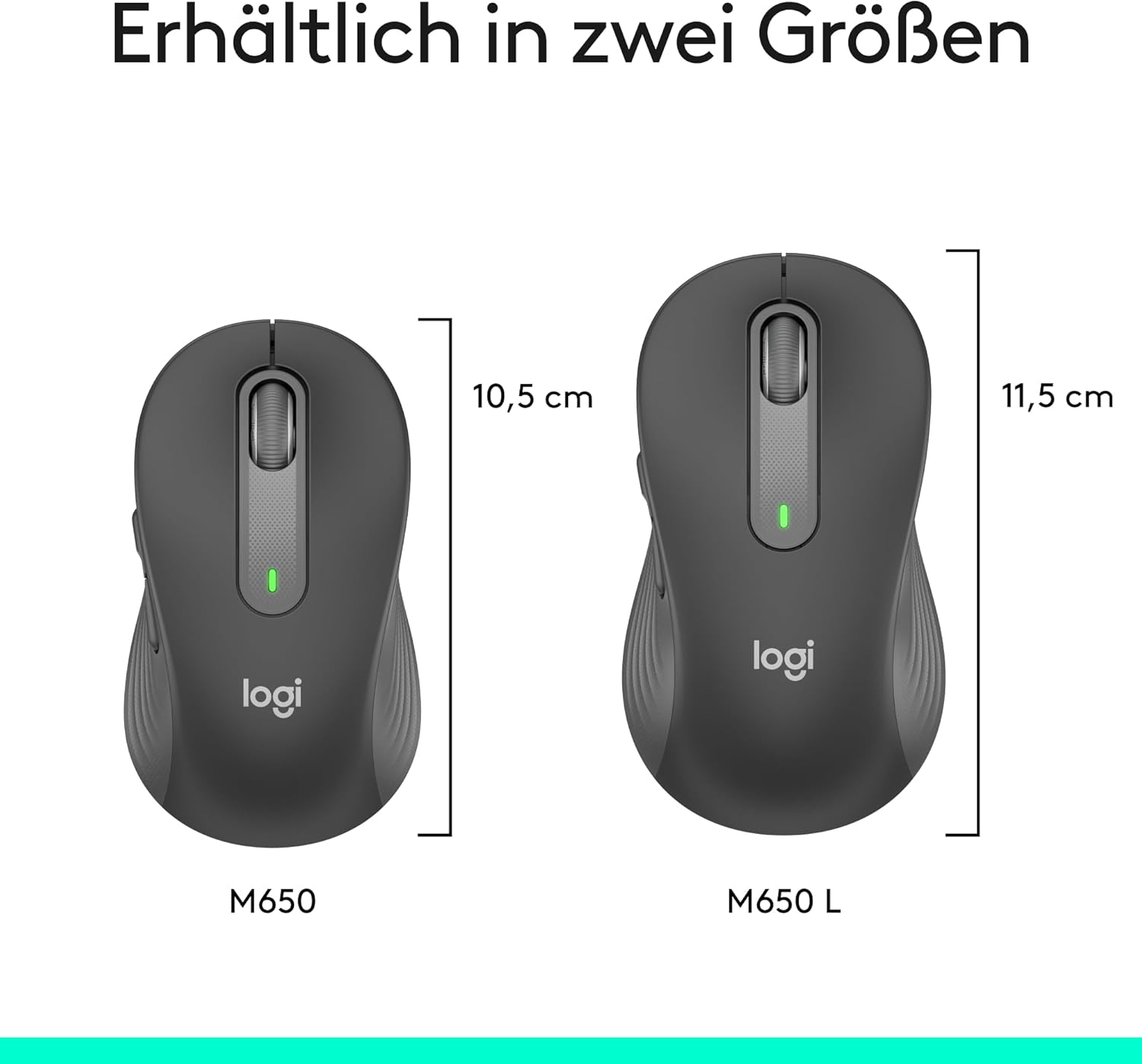 Безжична мишка Logitech Signature M650 - за малки до средни ръце, 2-годишна батерия, тихи щракания, персонализируеми странични бутони, Bluetooth, съвместимост с множество устройства - Графит