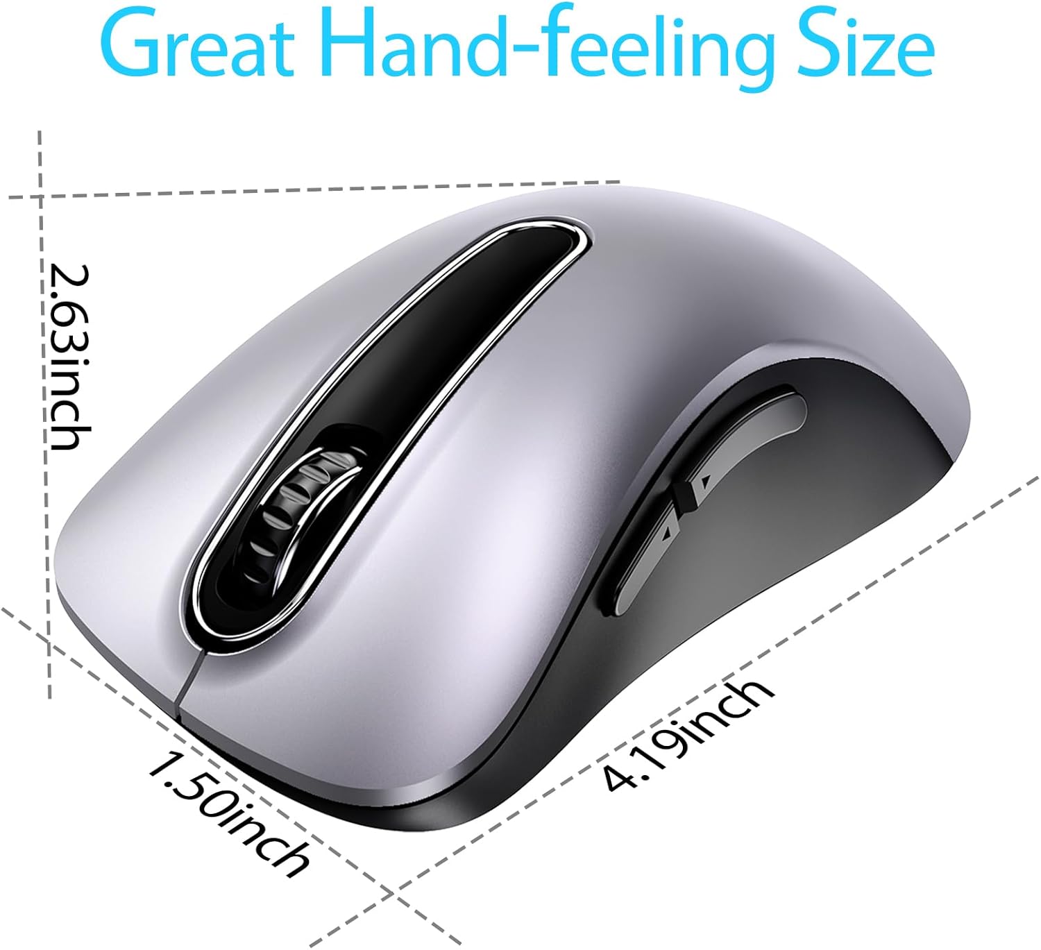 Безжична мишка memzuoix 2.4 GHz, преносима оптична мишка 1400 DPI с мини USB приемник, 5 бутона и батерия за лаптоп, настолен компютър, MacBook - сребриста