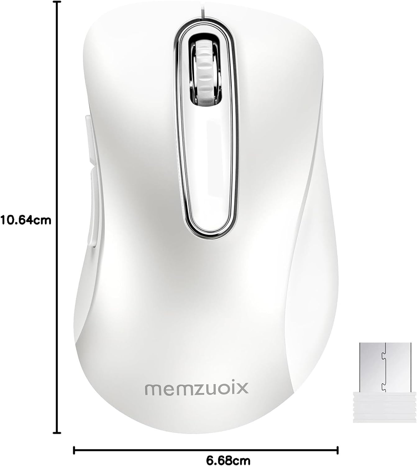 Безжична мишка memzuoix 2.4G, 1400 DPI, мобилна оптична безжична с USB приемник, преносима компютърна мишка, безжична мишка за лаптоп, компютър, настолен компютър, MacBook, 5 бутона (бяла)