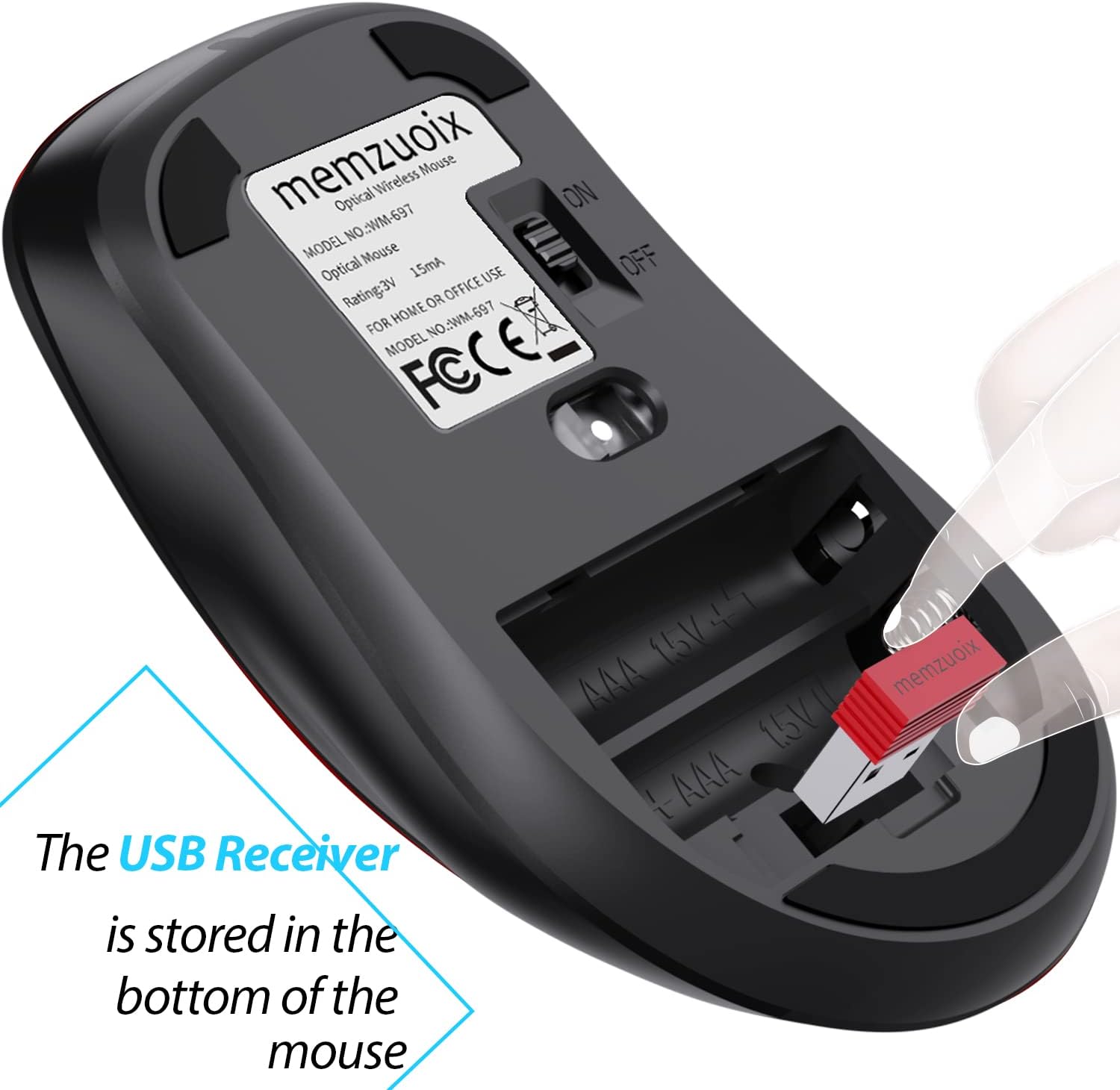 • Енергоспестяваща: безжичната мишка memzuoix се захранва от две AAA батерии (не са включени) и автоматично превключва в режим на пестене на енергия след 7 минути неактивност. С едно щракване върху произволен бутон тя е веднага готова за употреба отново.