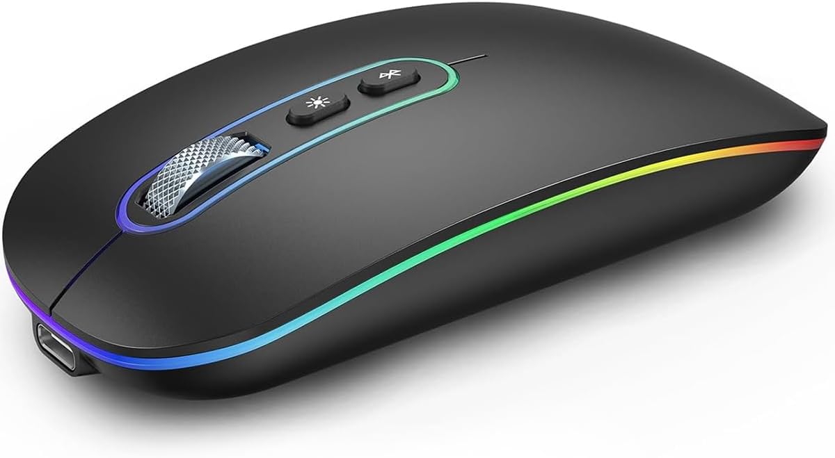 Безжична мишка RaceGT, акумулаторна, Bluetooth 5.1 + USB 2.4 GHz, LED, безжична, ергономична, тиха, с 3 регулируеми DPI нива и бутон за включване/изключване, преносима мишка за лаптоп