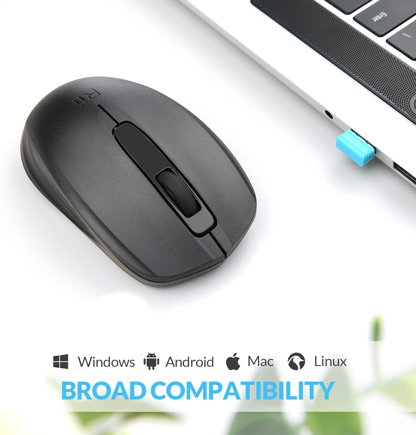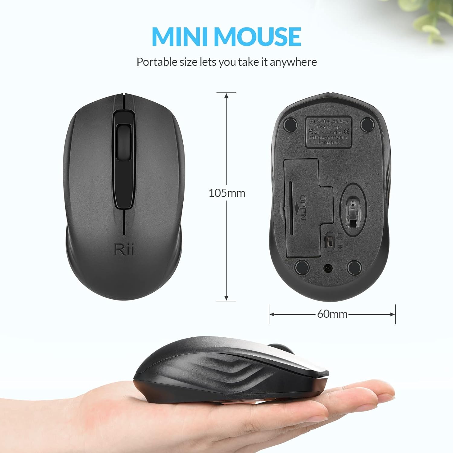 • Безжична мишка със стабилна връзка: Безжична технология Rii 2.4 GHz - стабилна свързаност, прецизно сканиране, бърза скорост на пренос на данни. Максималното работно разстояние е 10 м, като се избягват забавяния, загуби и смущения на файлове.