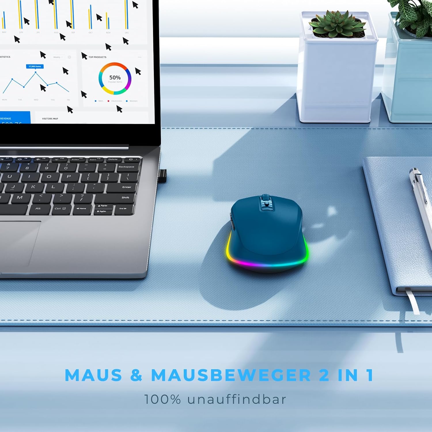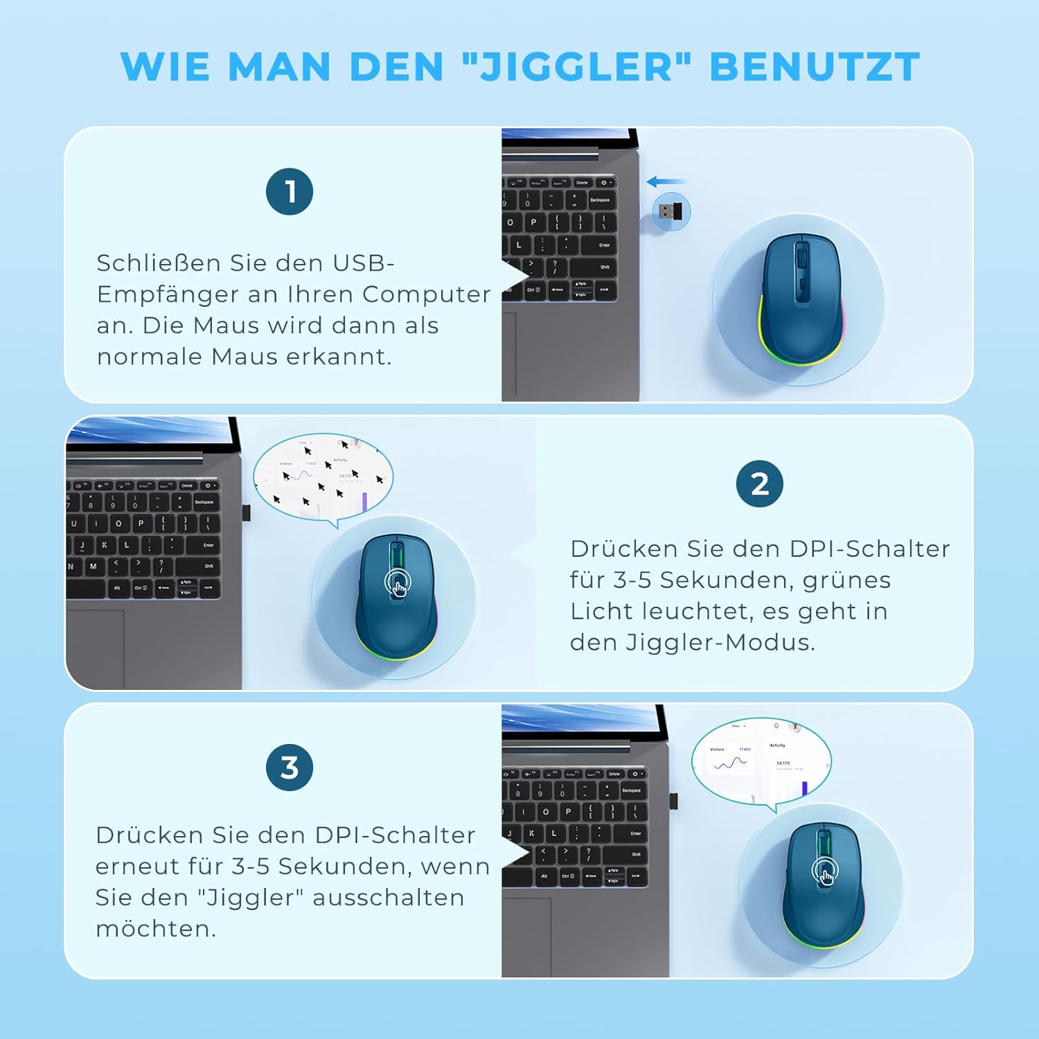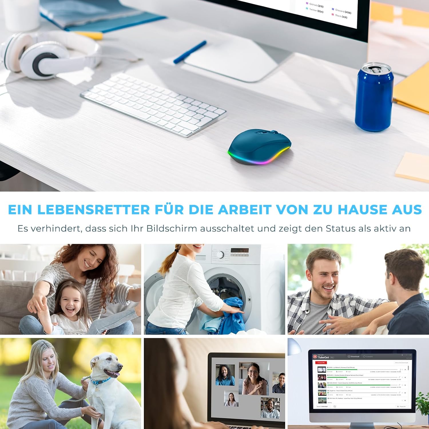 • LED мишка и мишка-джиглер 2 в 1: Ако работите от вкъщи и сте уморени да бъдете роб на компютъра си, тази мишка и джиглер в 1 може да е вашият избор. Просто натиснете и задръжте бутона DPI за 3-5 секунди, за да го настроите в режим на джиглер, за да предотвратите заключването на компютъра, ако се наложи да си тръгнете.