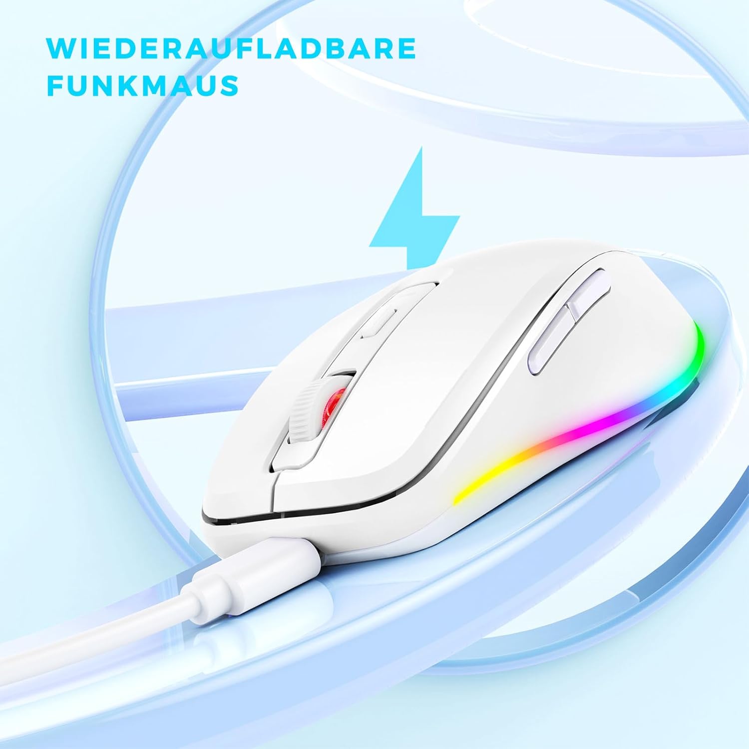 Безжична мишка seenda с LED презареждаща се мишка с мишка Jiggler, тиха 2.4G USB безжична мишка за лаптоп, компютърна безжична мишка с осветена DPI 2000 за PC, Windows, Mac OS (бяла)