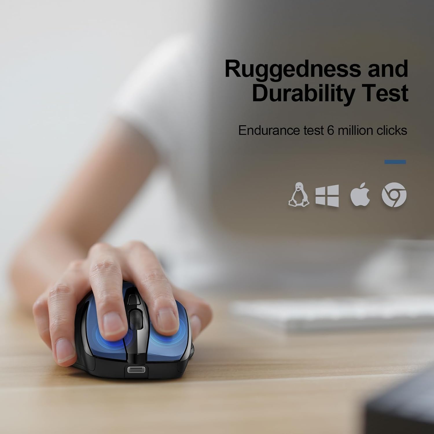 Безжична мишка TECKNET с акумулатор, 2.4G тихо щракване, 6 регулируеми 4800 DPI безжична компютърна мишка, ергономична мишка за лаптоп, 6 бутона USB за Chromebook, ергономичен захват - син