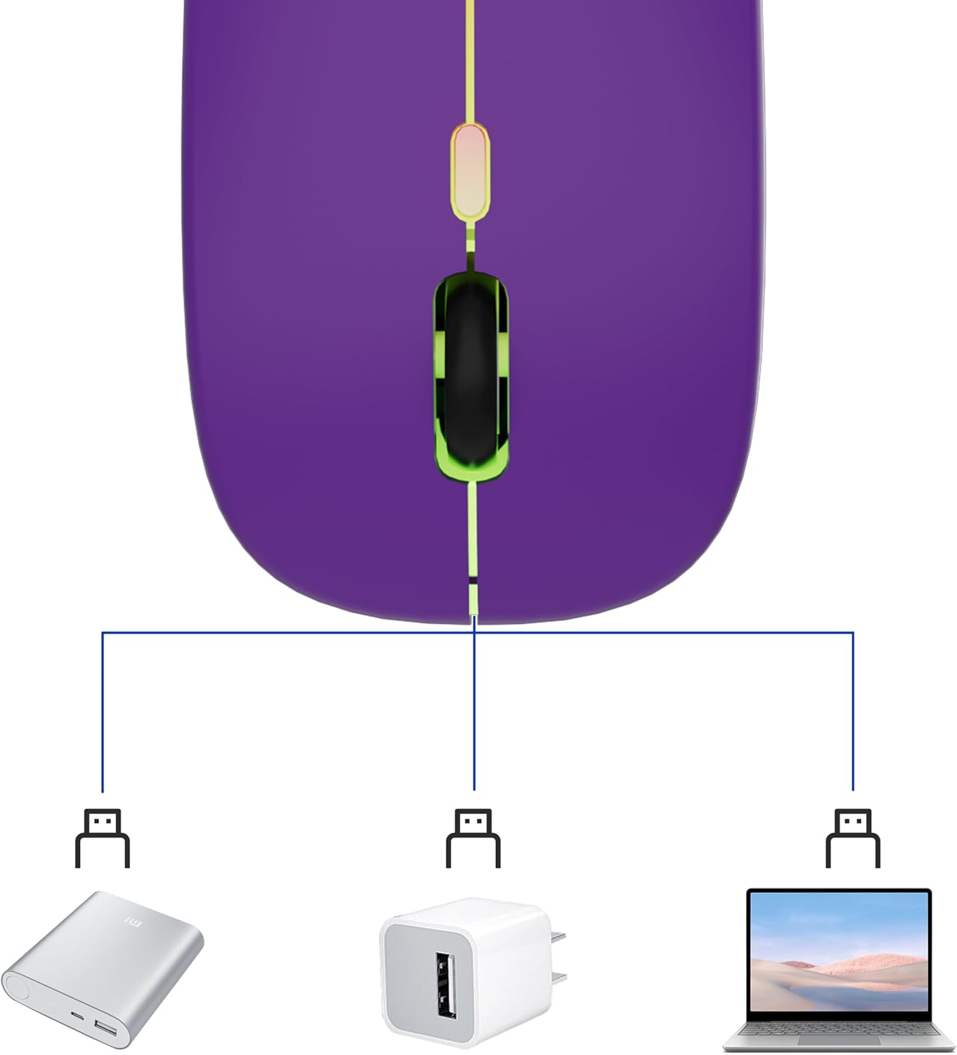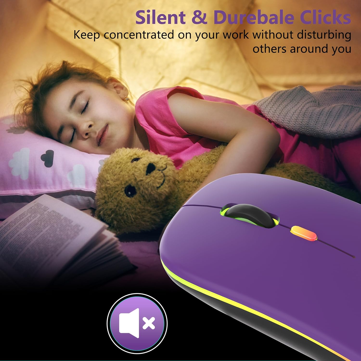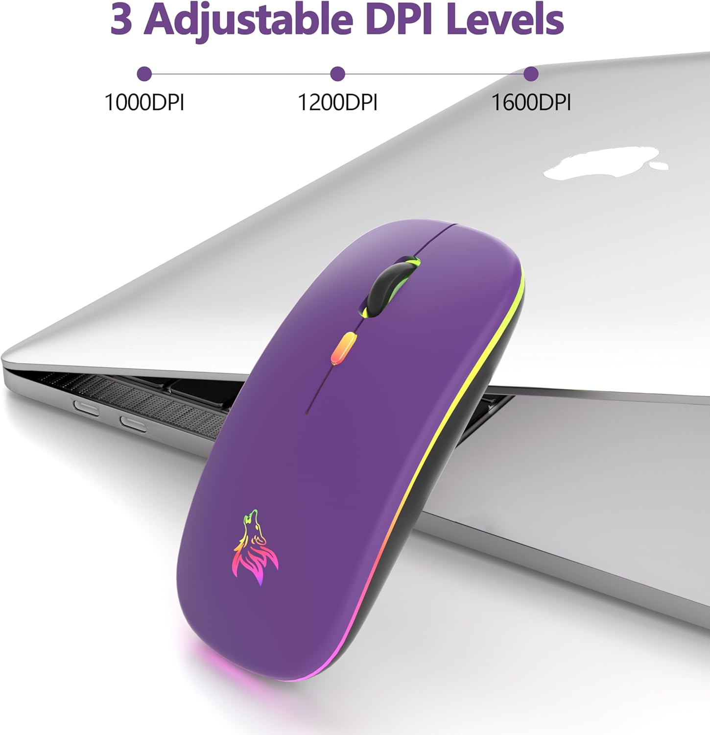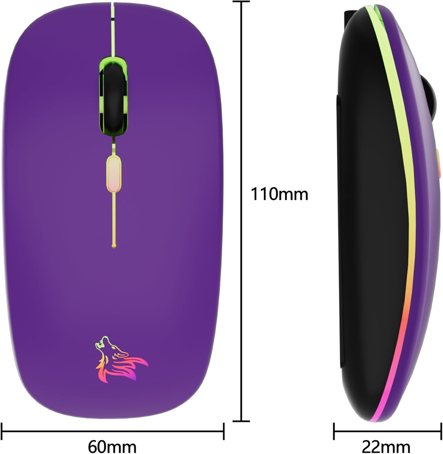 • LED цветна безжична геймърска мишка: превключвателят в долната част на мишката ви позволява да променяте светлината, меките и ярки 7-цветни дишащи светлини се сменят произволно и добавят цвят към вашата работа или игри.