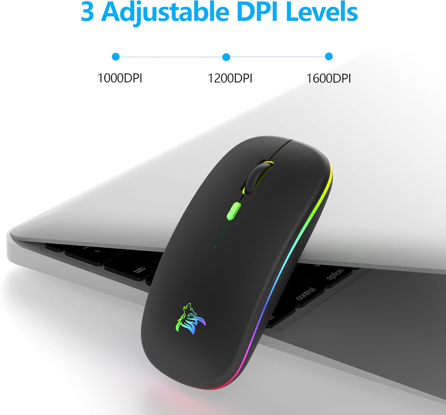 • 3 регулируеми DPI стойности и леко щракване: Тази безжична оптична мишка не изисква инсталиране на софтуер. Може да се използва като безжична геймърска мишка, 3 DPI превключвателя (1000, 1200, 1600) за промяна на скоростта на мишката, с работно разстояние до 10 метра, подходяща за офис или ежедневна употреба и е за всички видове игри.