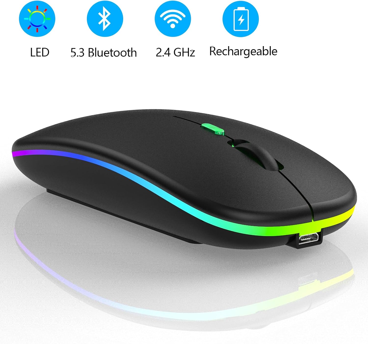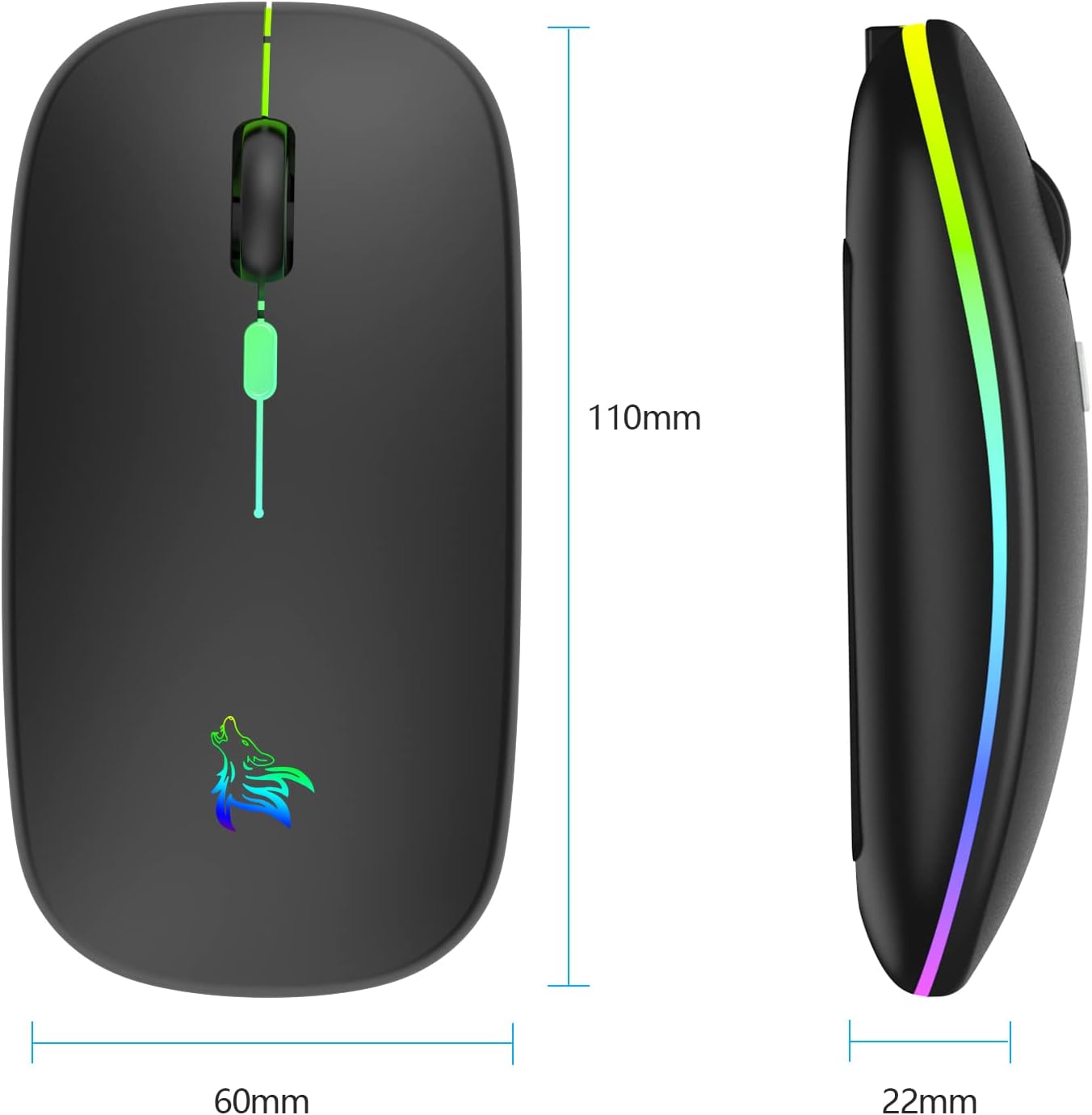 • LED цветна безжична геймърска мишка: превключвателят в долната част на мишката ви позволява да променяте светлината, меките и ярки 7-цветни дишащи светлини се сменят произволно и добавят цвят към вашата работа или игри.