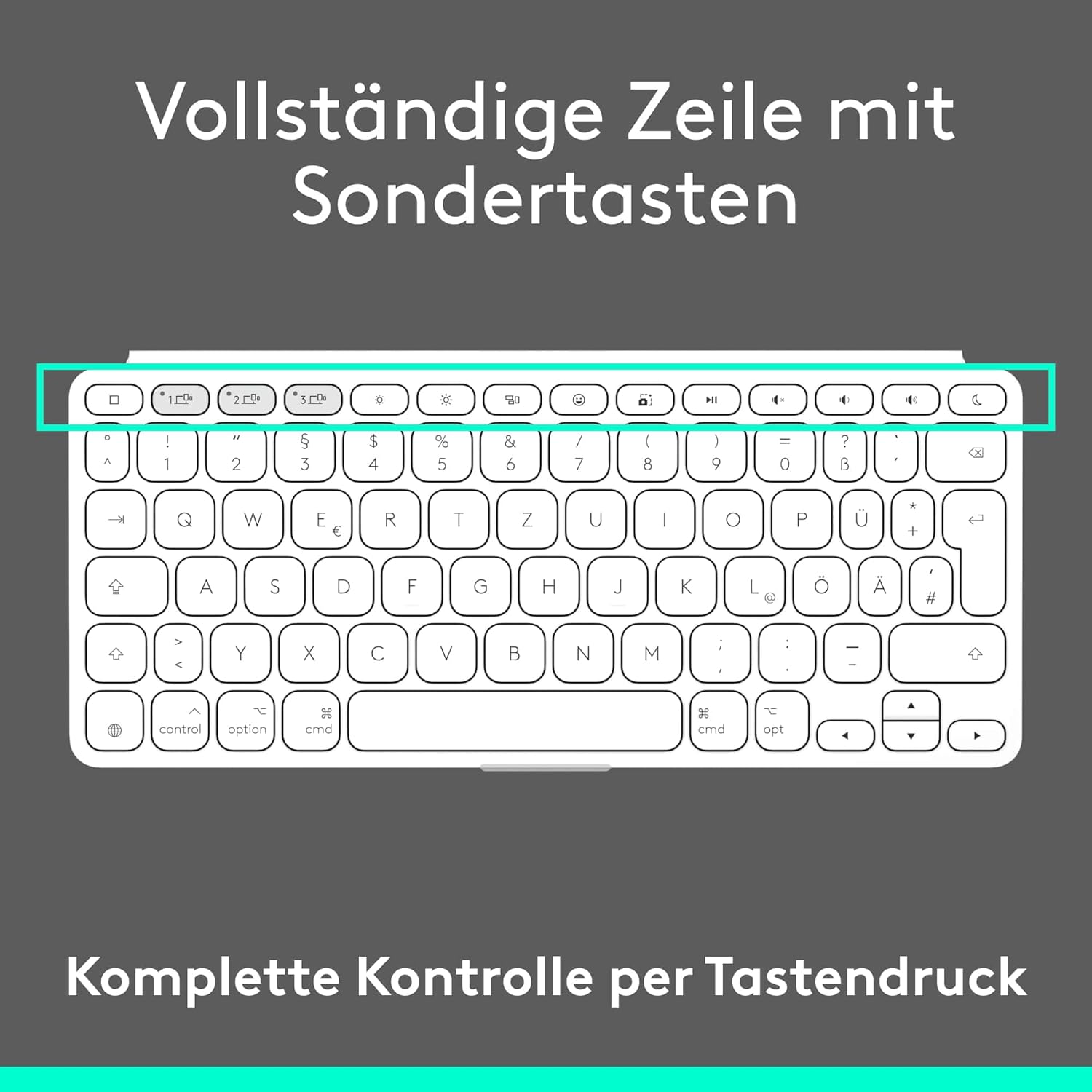 Безжична мобилна клавиатура Logitech Keys-To-Go 2 за iPad с вграден защитен калъф, тънка и компактна за iPad, iPhone, Mac и Apple TV, лесна смяна на устройството, немска QWERTZ подредба - светло сива