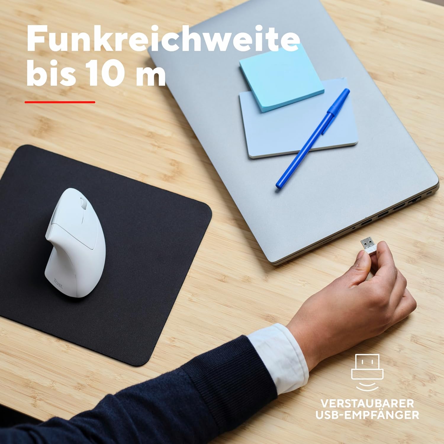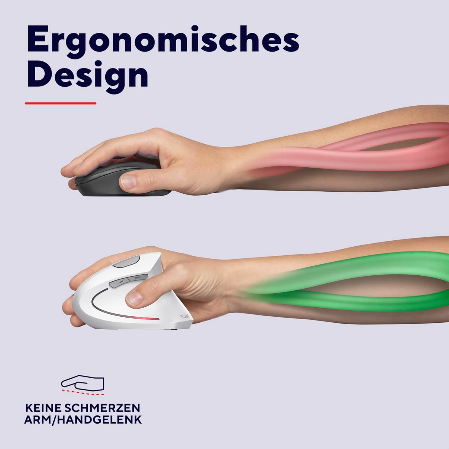 Безжична вертикална мишка Trust Verto, безжична ергономична мишка, предотвратяване на синдром на тенис лакътя/ръката на мишката (RSI синдром), 800-1600 DPI, безжична мишка за десничари, компютър, лаптоп, Mac, с