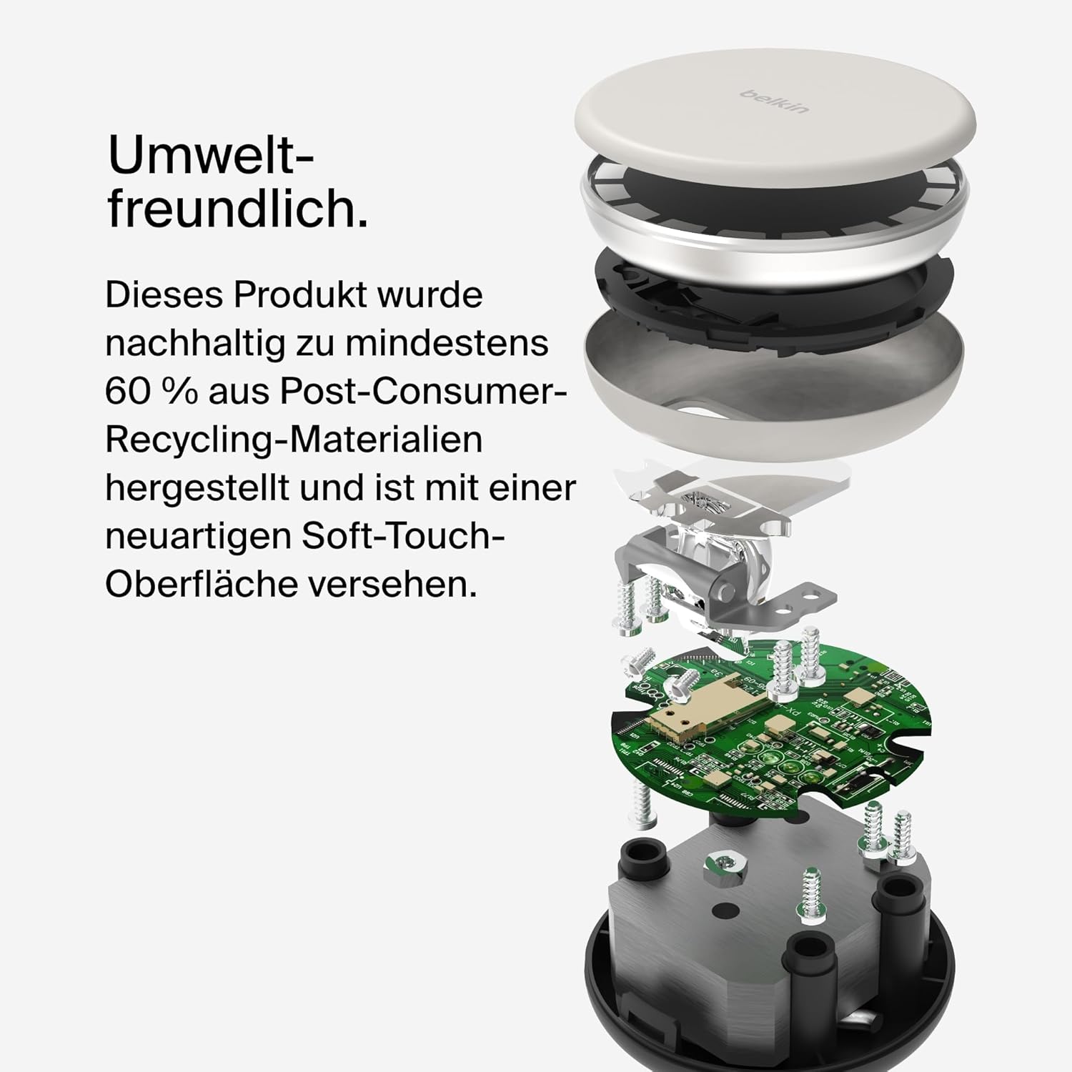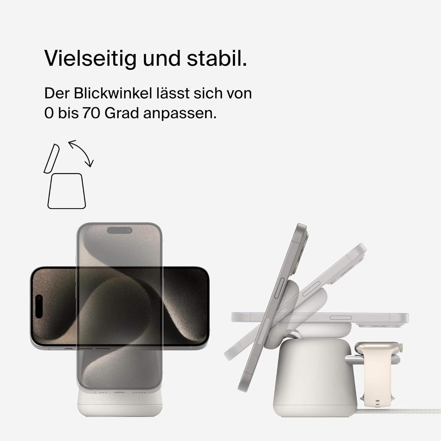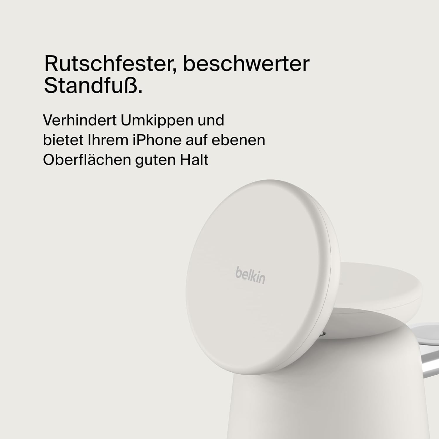 Безжична зарядна станция Belkin BoostCharge Pro 2-в-1 с MagSafe (15W) зарядно, съвместима с iPhone Series 17, Air, 16, 15, 14, Pixelsnap, AirPods и други устройства с MagSafe