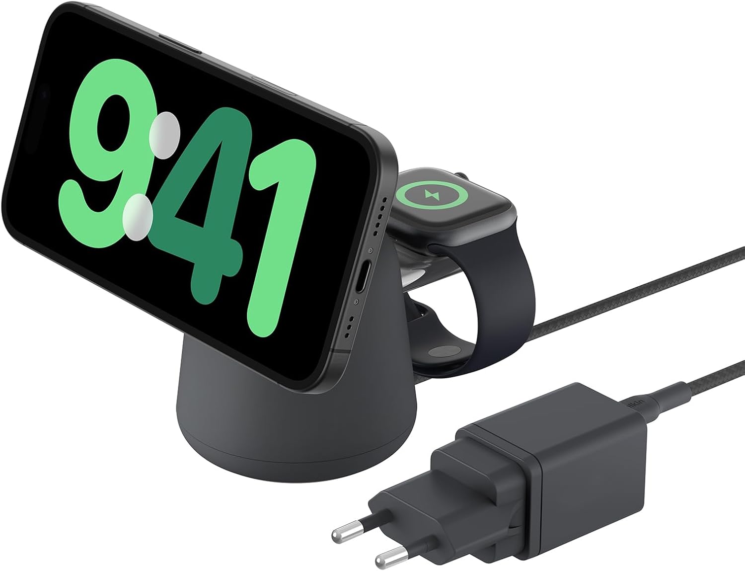 • Едновременно безжично зареждане: Тази индуктивна зарядна станция BoostCharge Pro е подходяща за едновременно зареждане на две устройства - с 15W за бързо зареждане на вашия iPhone и 5W за Apple Watch или AirPods.