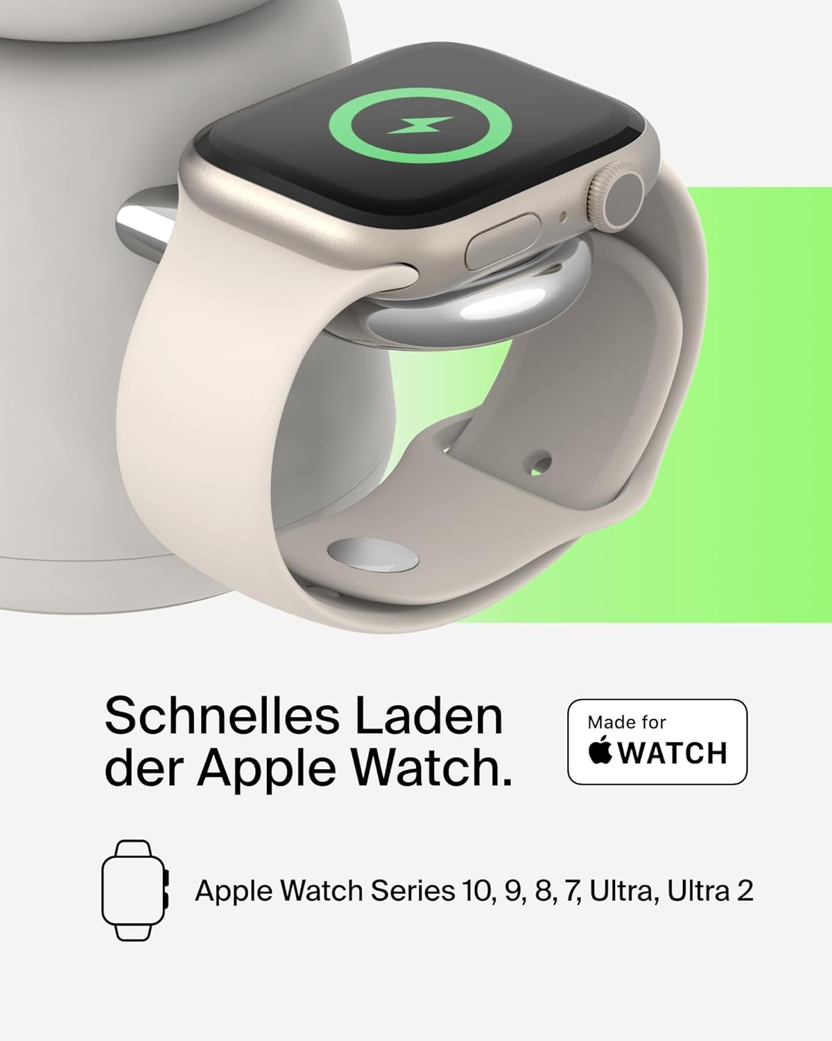 • Едновременно безжично зареждане: Тази индуктивна зарядна станция BoostCharge Pro е подходяща за едновременно зареждане на две устройства - с 15W за бързо зареждане на вашия iPhone и 5W за Apple Watch или AirPods.