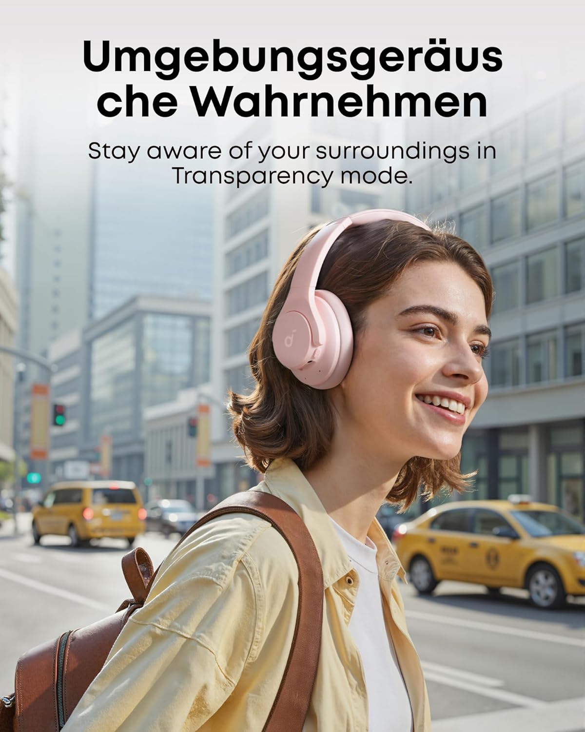 • ЗВУК НА ОКОЛНАТА СРЕДА: Ако искате съзнателно да възприемате обкръжението си, например когато говорите в обществения трафик, пресичате улицата или просто искате да се свържете със света около вас, просто превключете в режим на прозрачност на вашите шумопотискащи слушалки.