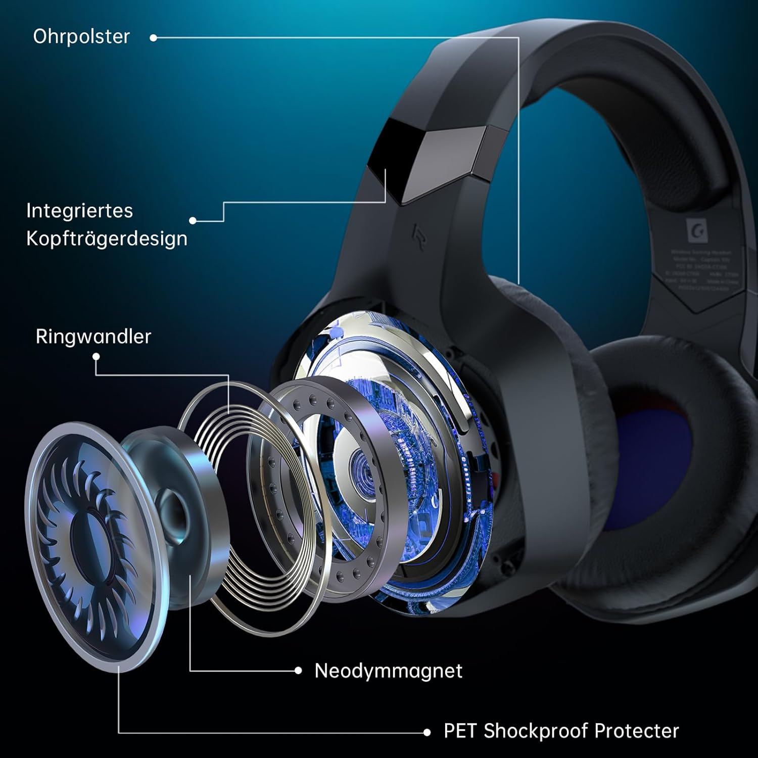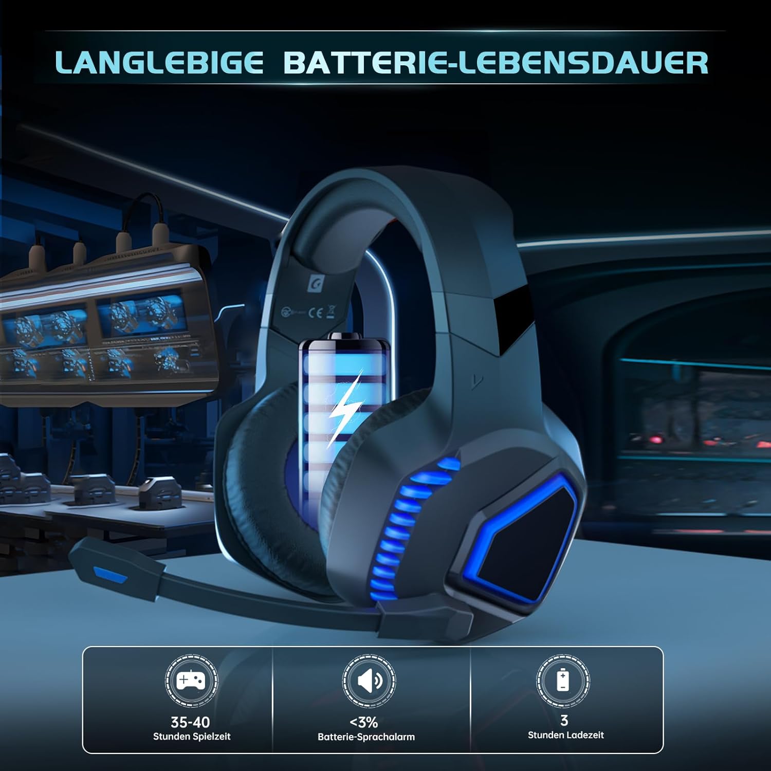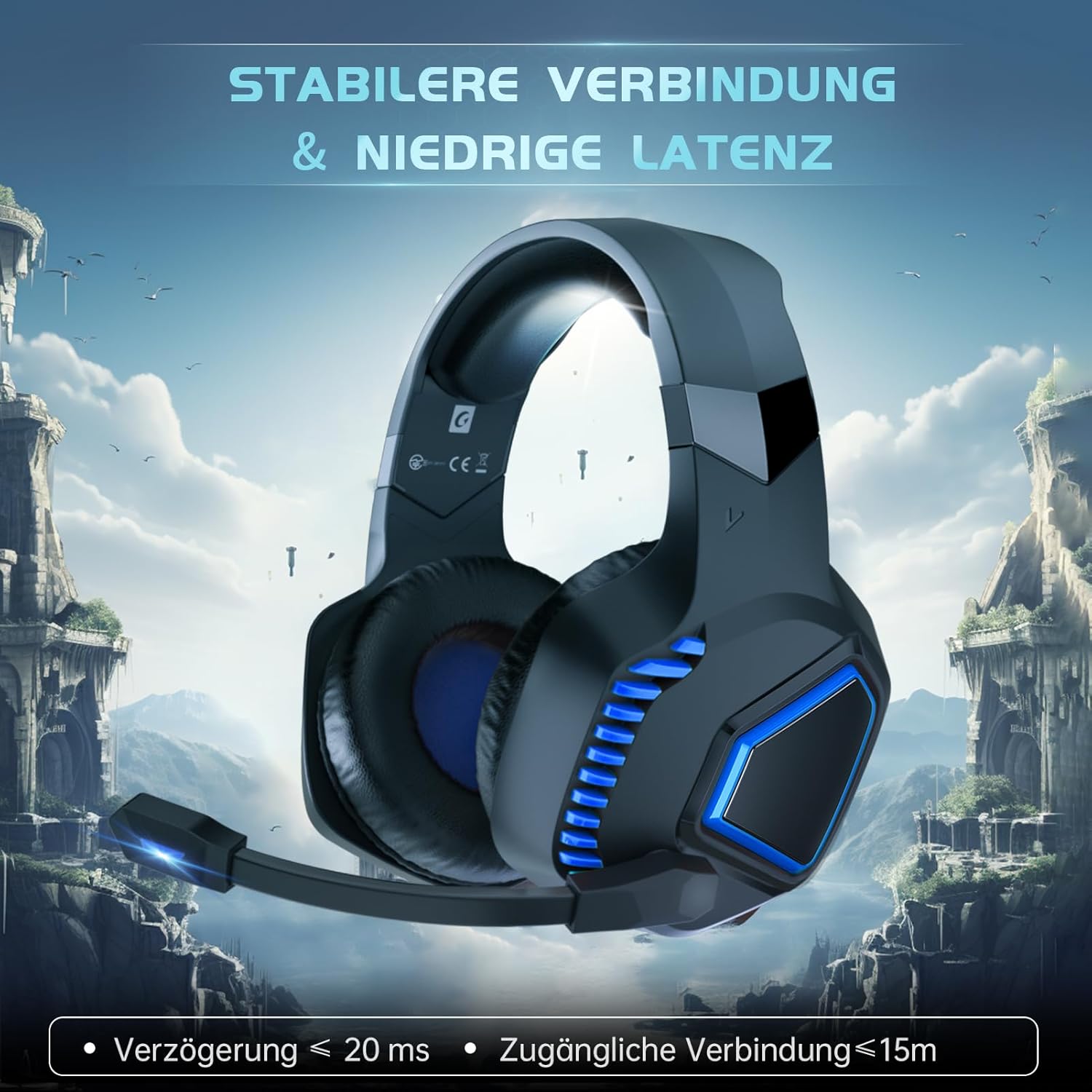 Безжични геймърски слушалки, Безжични геймърски слушалки за PS5/PS4/PC/Switch/Mac, Слушалки с микрофон с шумопотискане, Bluetooth 5.2, 3D съраунд звук, 3.5 мм кабелни слушалки за Xbox серия.