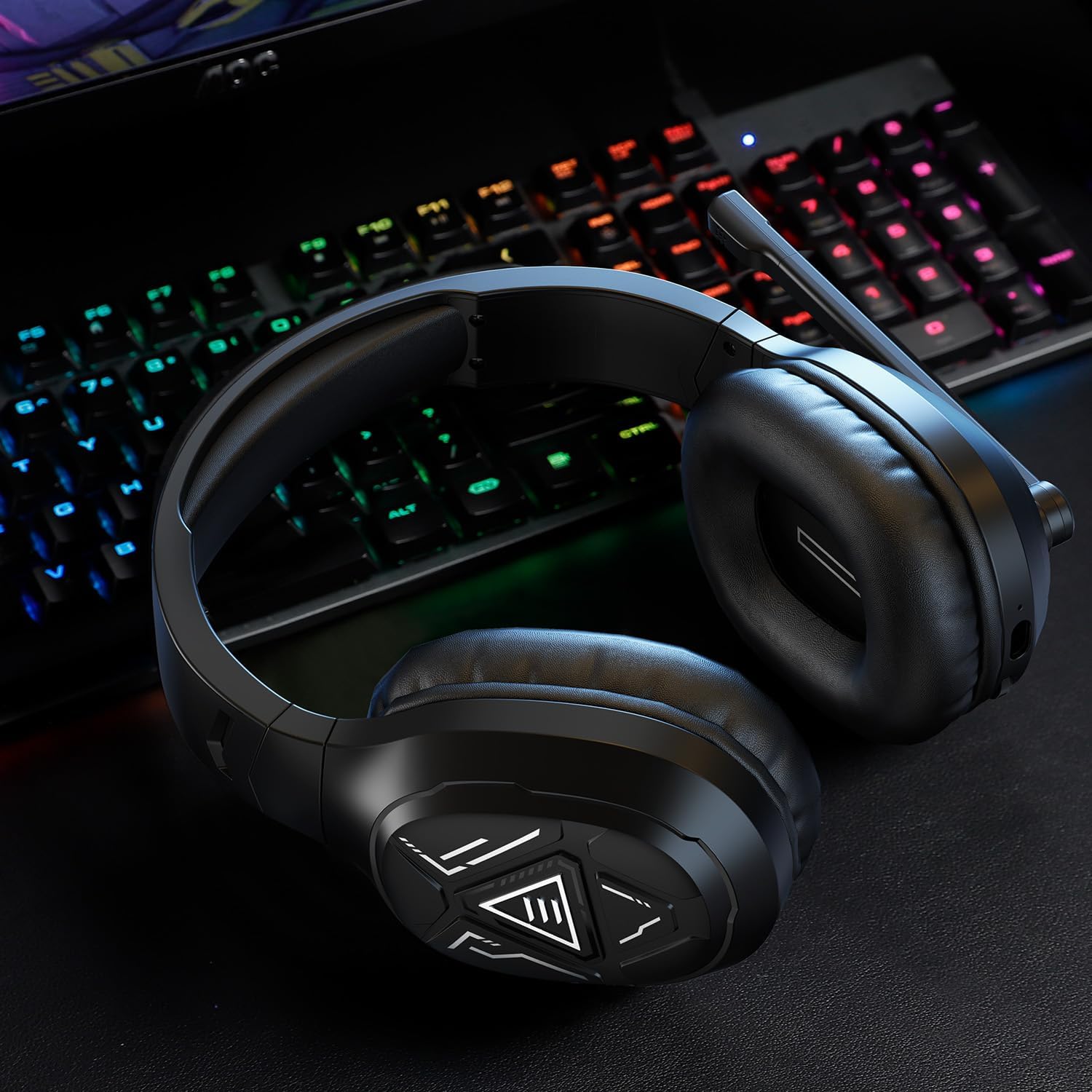 Безжични геймърски слушалки EKSA за PS4 PS5 PC, 2.4G Bluetooth слушалки с микрофон, 7.1 съраунд звук, ENC и RGB светлина, USB A+C безжични геймърски слушалки, 52 часа живот на батерията, 3.5 мм жак