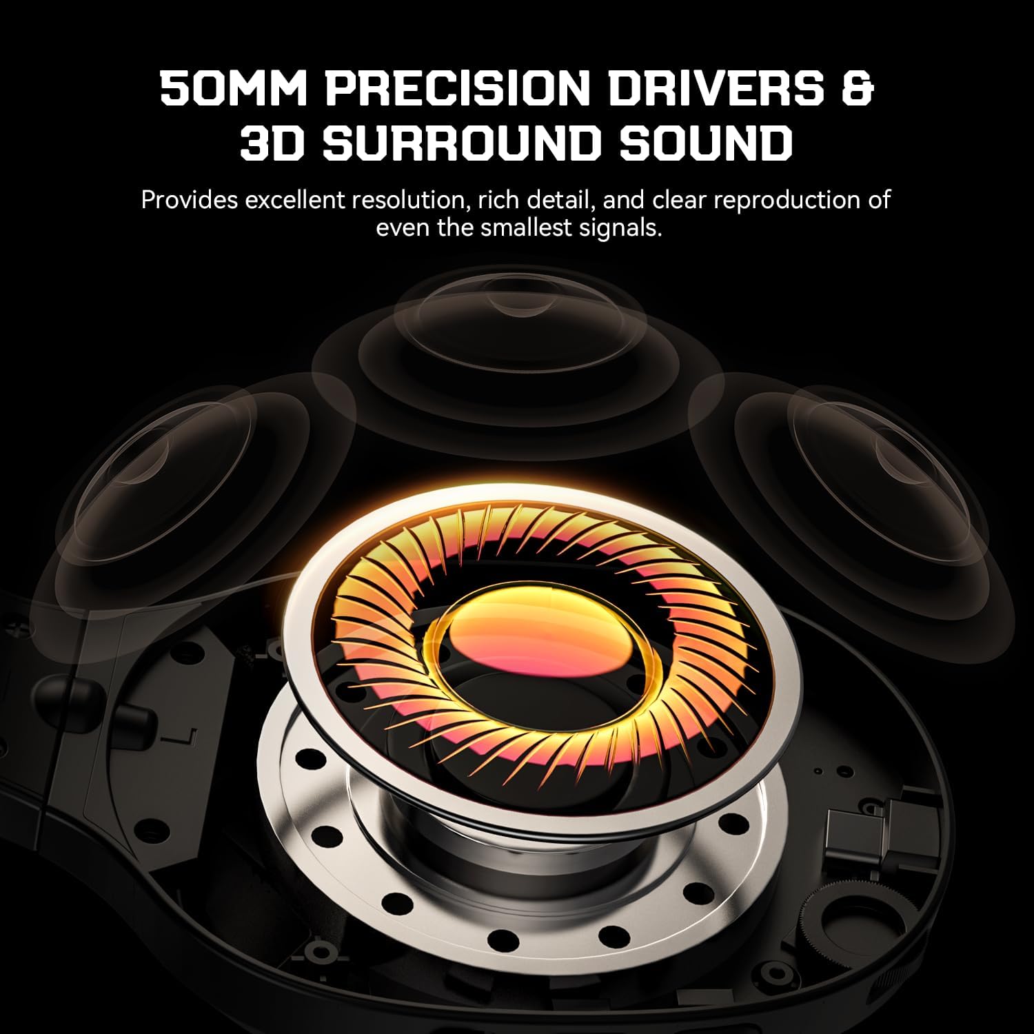 • Професионална технология за настройване: Безжичните геймърски слушалки EKSA имат 50 мм драйвери и вградена 7.1 технология за съраунд звук, която подчертава финия и критичен фонов шум във вашата игра, така че можете да чуете всеки детайл и да не пропуснете нито една стъпка или кадър по време на игра. Освен това, безжичните слушалки са предварително зададени с три звукови режима (музика/игра/филм), които могат да се превключват в зависимост от сцената.