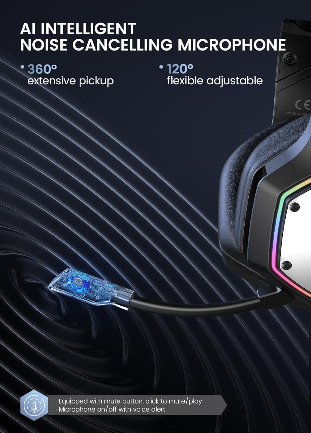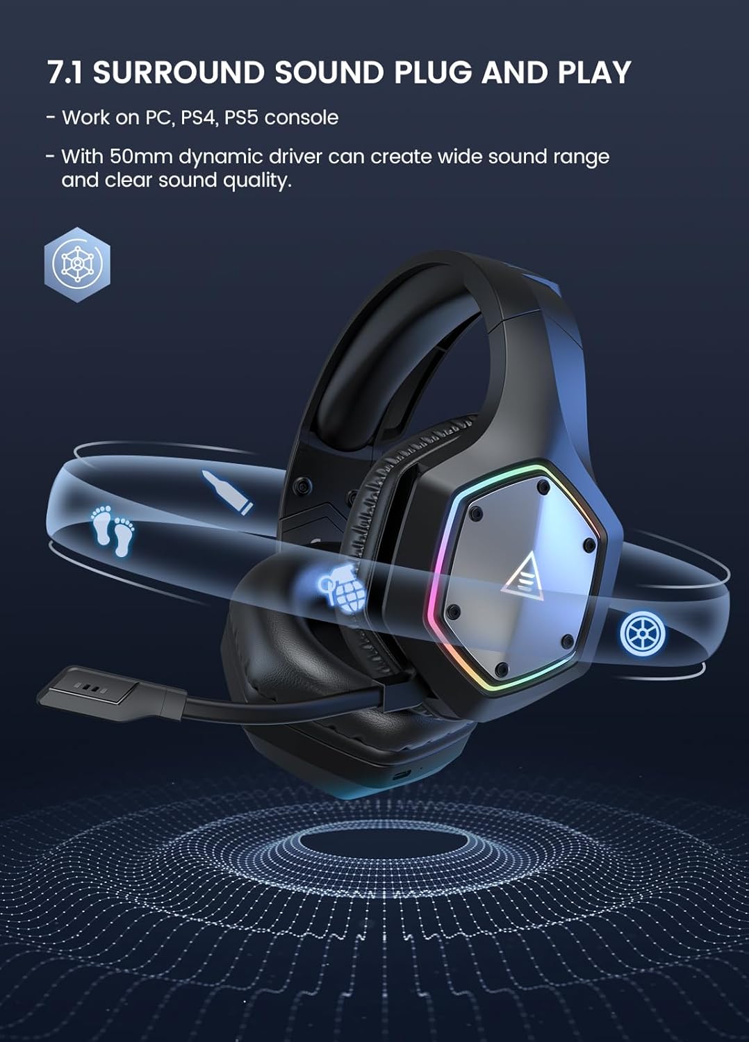 • [Интензивен съраунд звук]: 50 мм аудио високоговорител за интензивен бас и завладяващо игрово изживяване. Съраунд звукът ви позволява да откривате врагове от всички посоки. Включете и играйте.