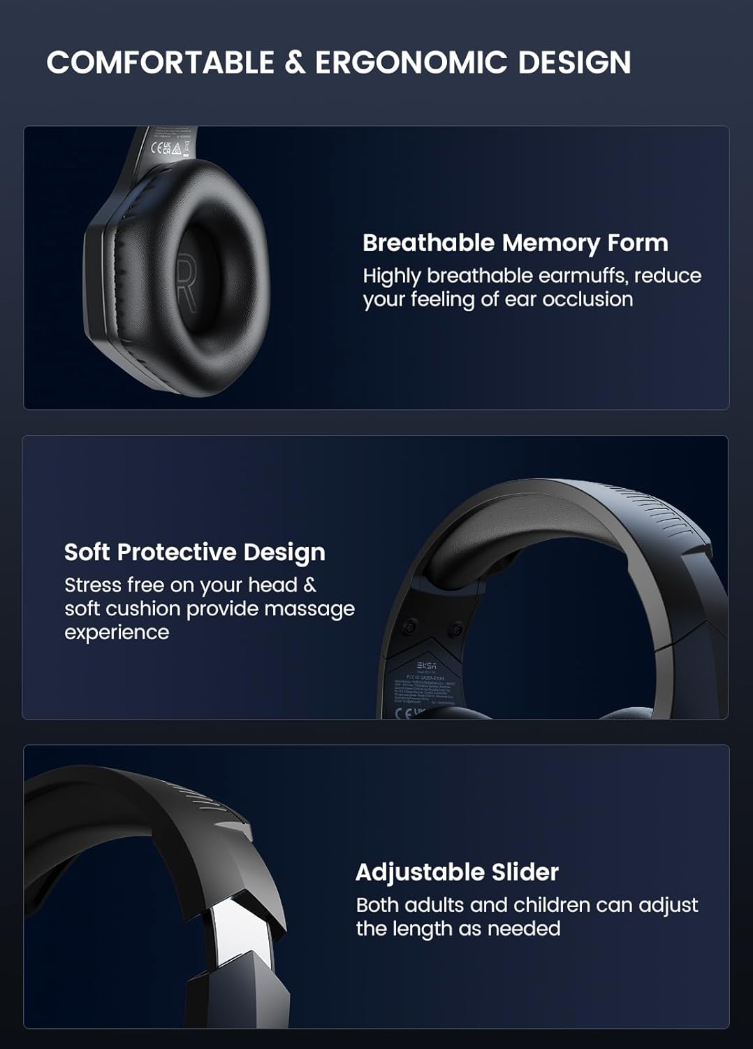 • Леки и удобни: Геймърските слушалки E1000 тежат само 250 г. Ергономичният дизайн и големите наушници, изработени от мека изкуствена кожа, осигуряват комфорт при продължително носене. Регулируемата лента за глава позволява прилягане без ограничения.
