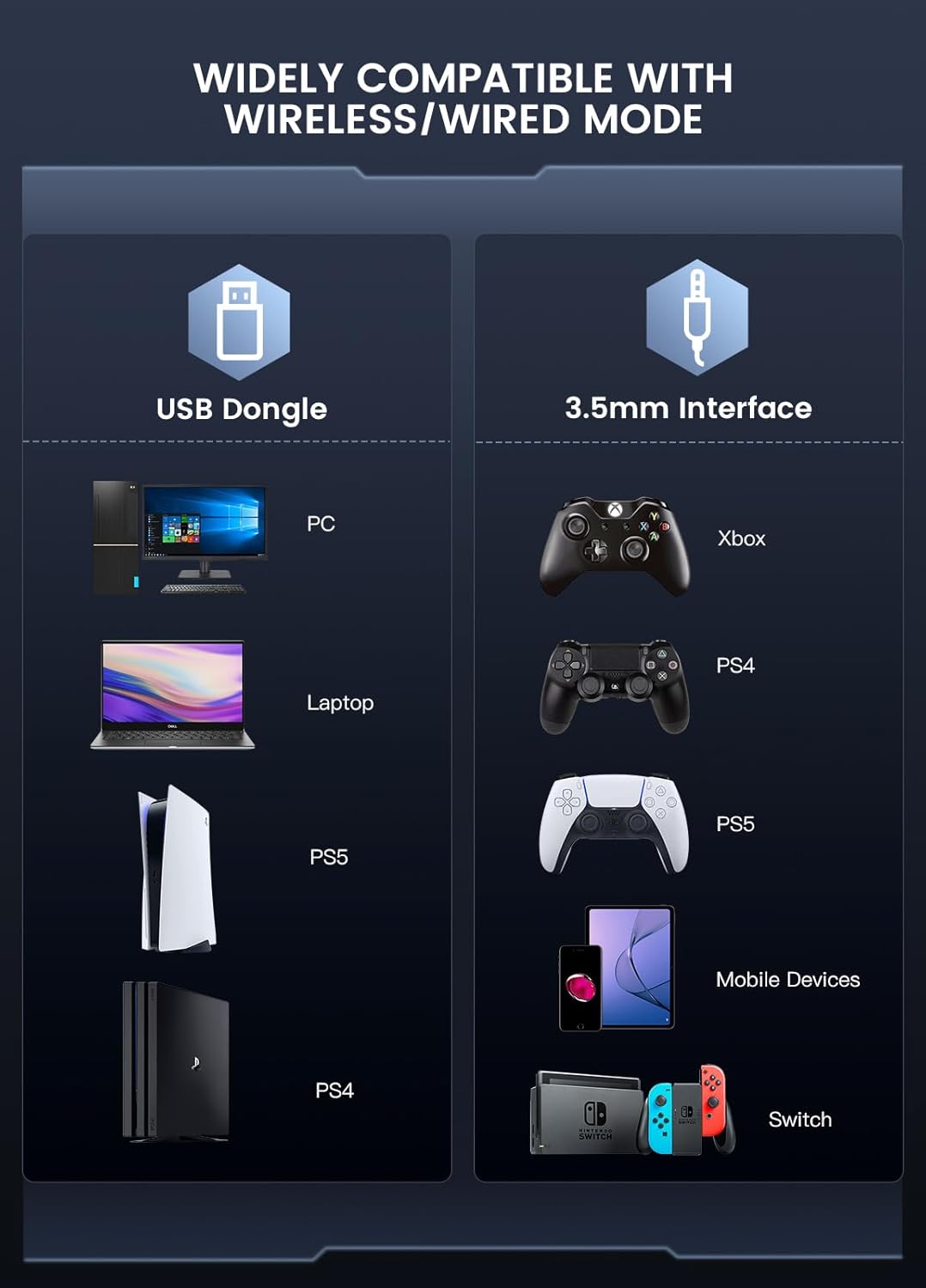 • [USB PC геймърски слушалки]: PC геймърски слушалки с USB порт. Подходящи за PC (Win 7, Win 8, Win 10, Mac OS), PS4/PS5 конзола, лаптопи, компютри и всички устройства с USB аудио порт.