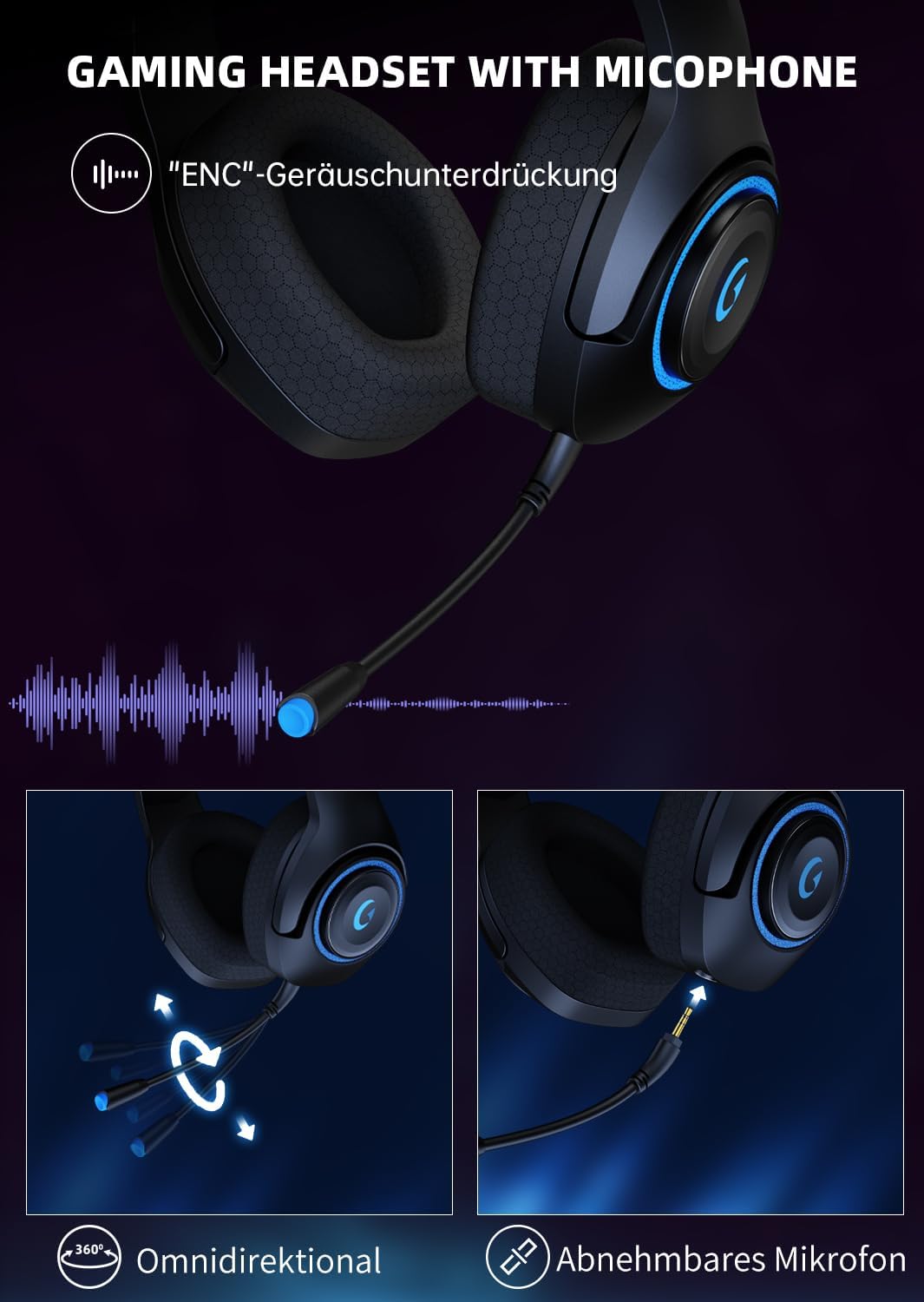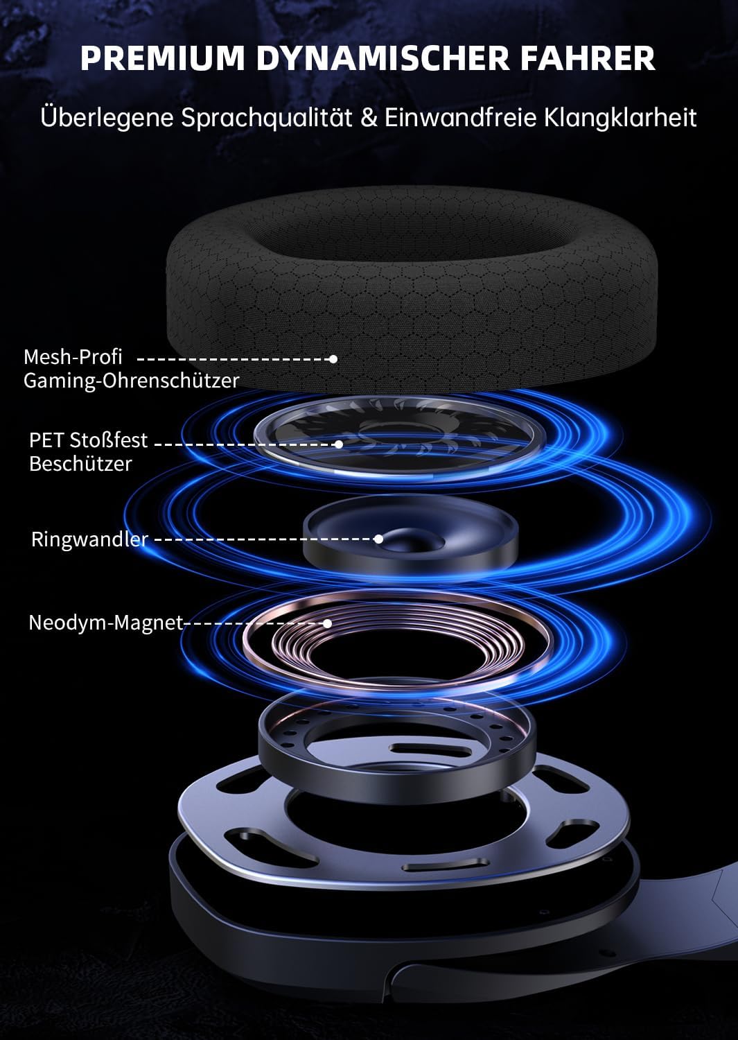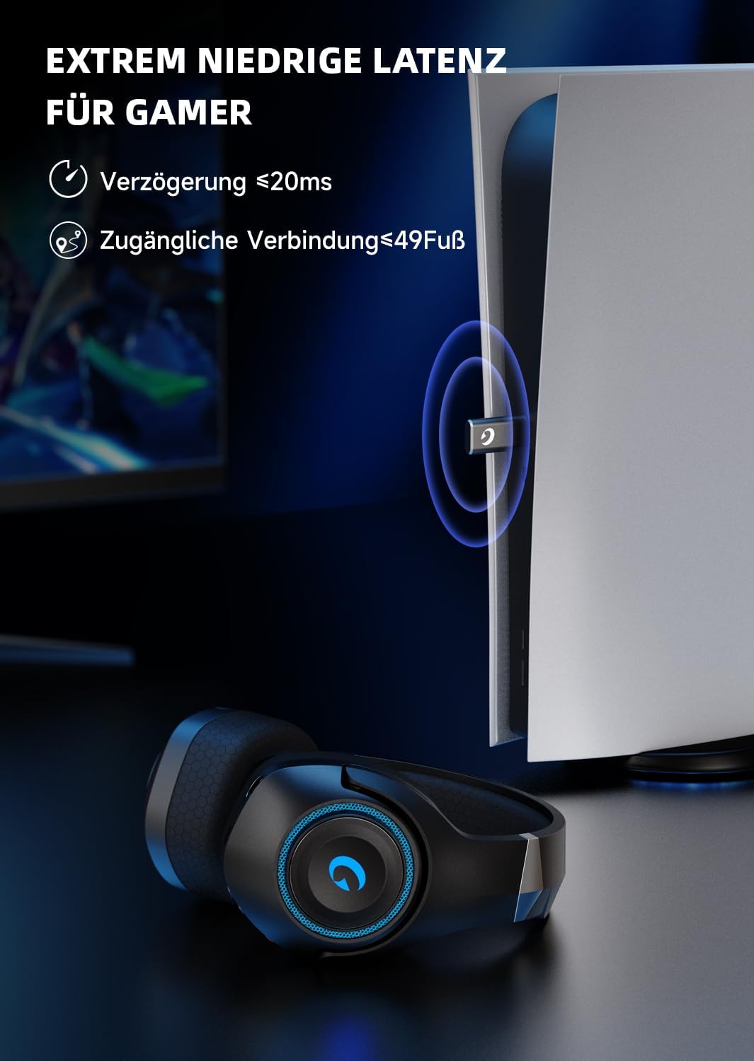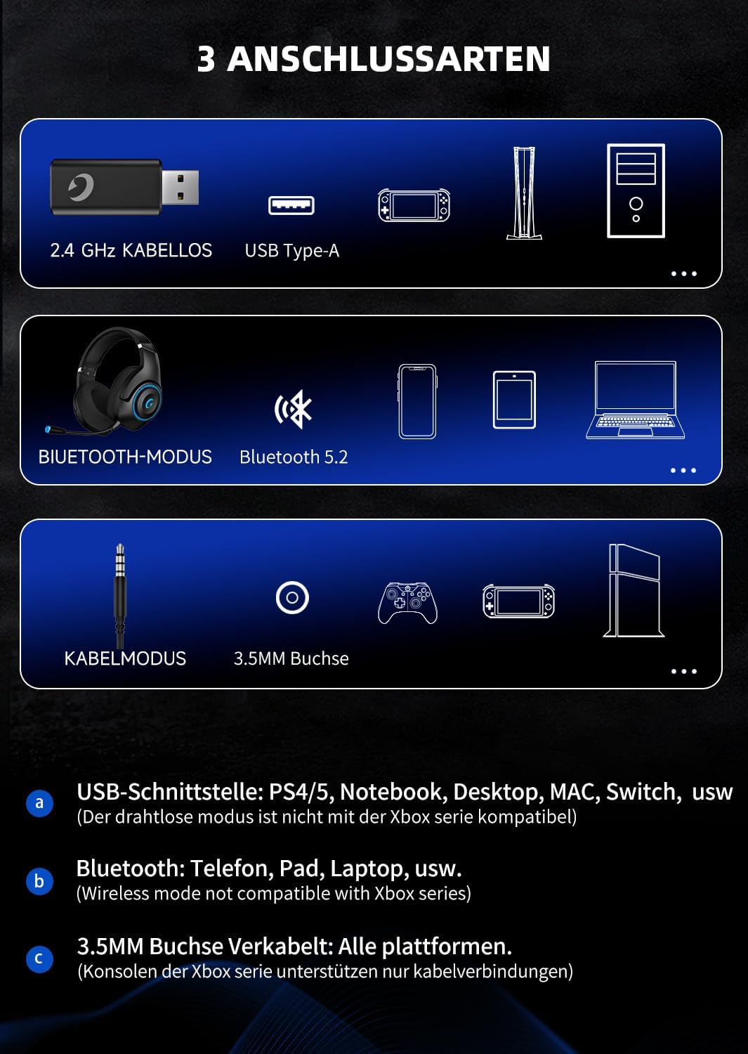 Безжични геймърски слушалки KAPEYDESI, безжични слушалки за PS5 PS4 PC, безжични геймърски слушалки с микрофон, 3D стерео съраунд звук, Bluetooth 5.2, 3.5 мм адаптерен кабел за геймъри от серията Xbox (черни)