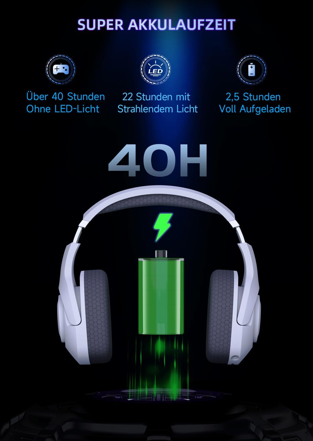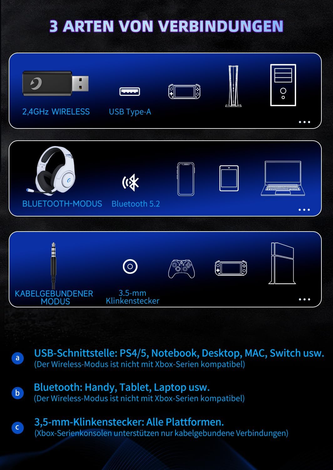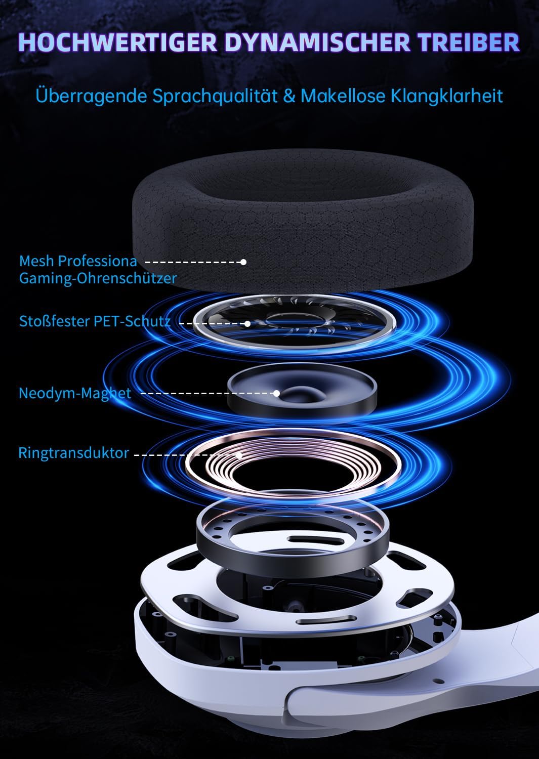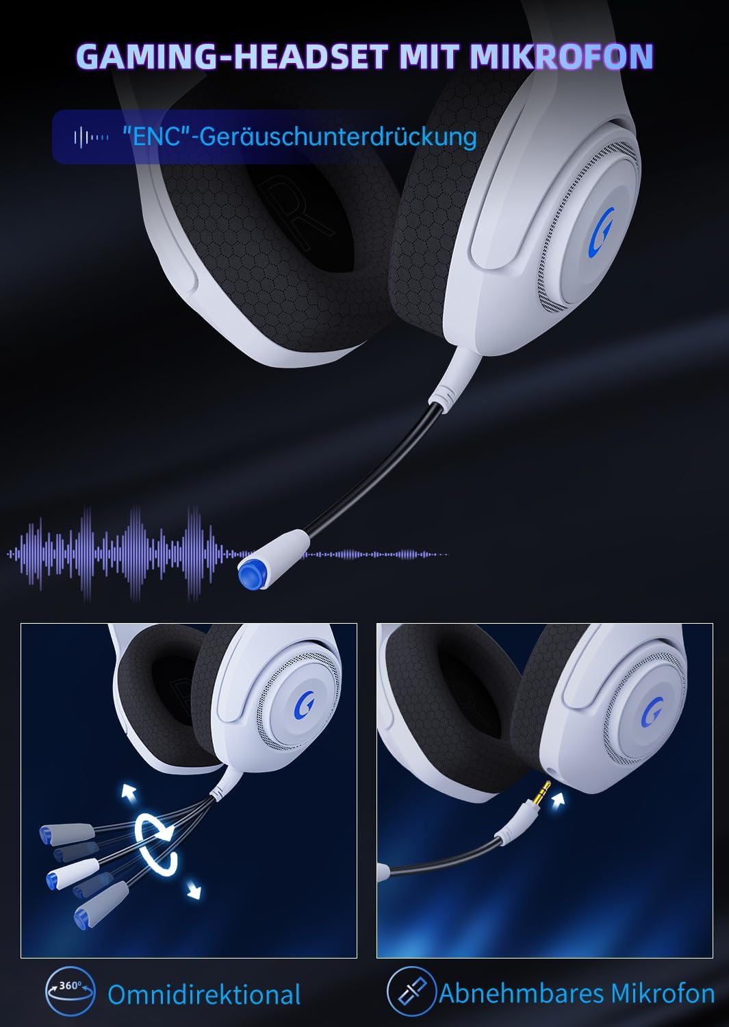 Безжични геймърски слушалки KAPEYDESI, геймърски слушалки с подвижен 3D стерео микрофон, Bluetooth 5.2 слушалки, геймърски слушалки за PS5 PS4 PC, Switch, Mac, бели